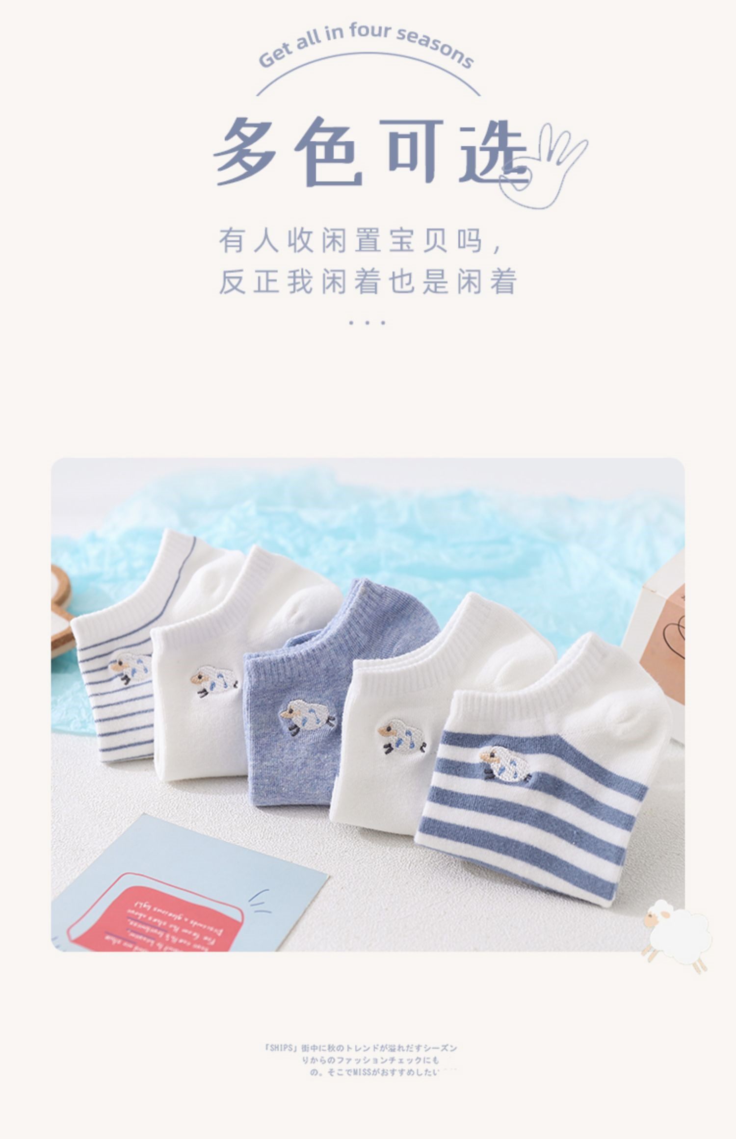 Tide, синие хлопковые демисезонные тонкие милые японские носки