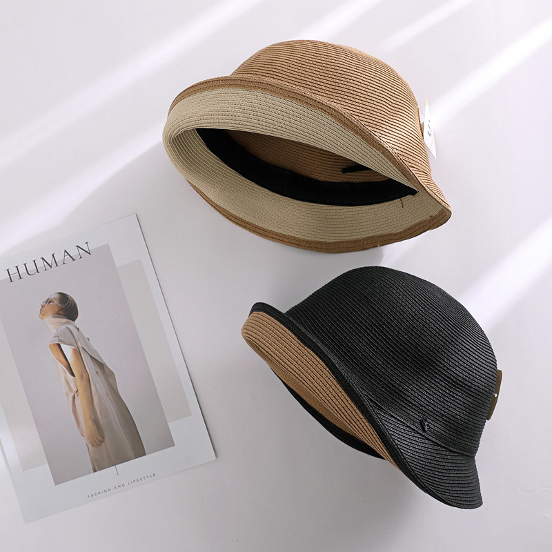 Ретро шапка, пляжная двухцветная солнцезащитная шляпа на солнечной энергии, французский ретро стиль