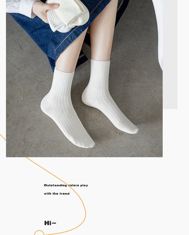 Tide, белые осенние тонкие носки, гольфы, однотонные лоферы, средней длины
