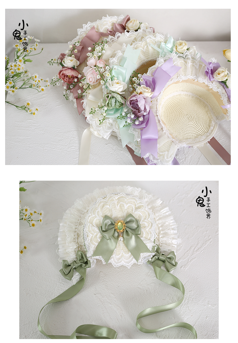 Лолита Лолита Ханьян Экстремальная соломенная шляпа Bnt кружево Cla цветочный бабочка