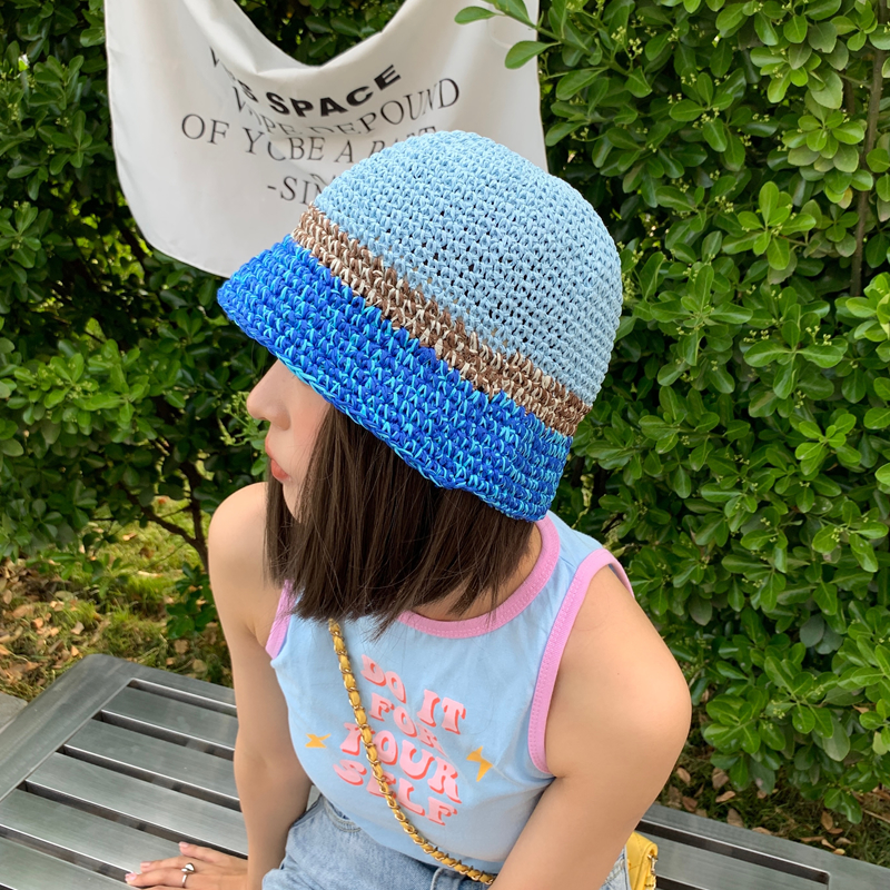 Японский летний пляжный синий соломенный таз, защита от солнца