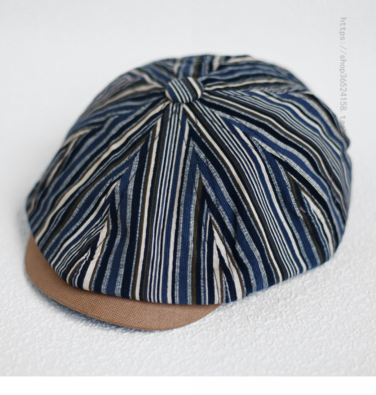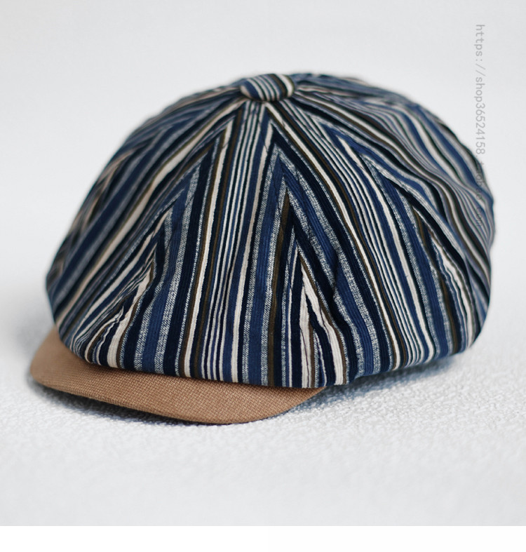 Инглун Полосатый художник Шляпа Мужчины и женщины ретро все -маты, цвет гало, корейская версия нишевой газеты детской шляпы Tide Brand Octopus