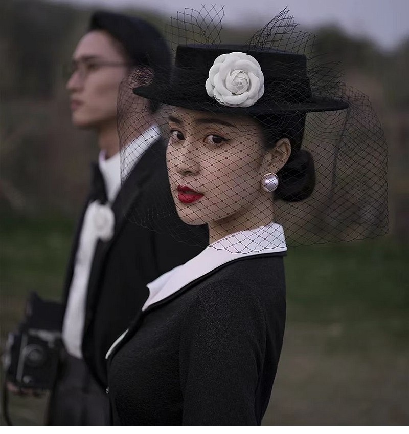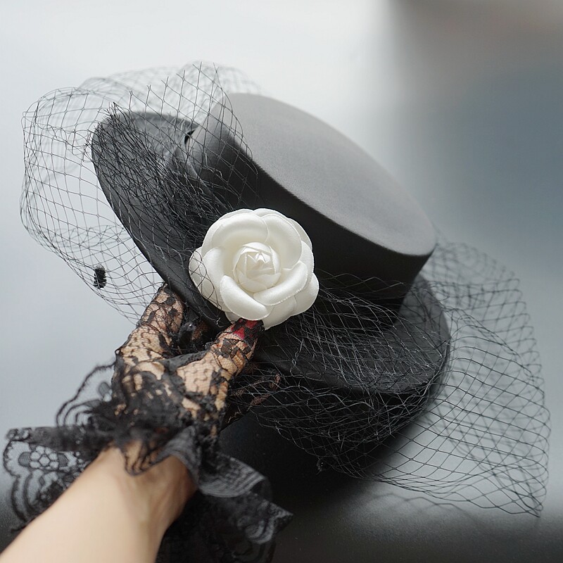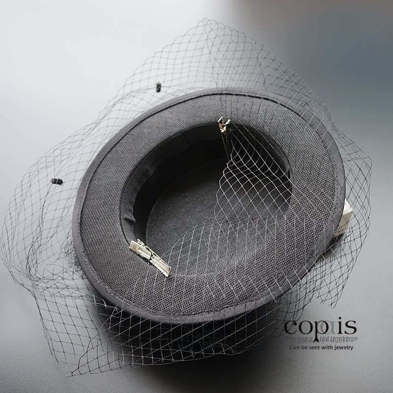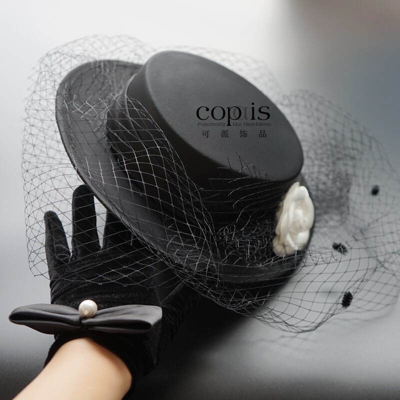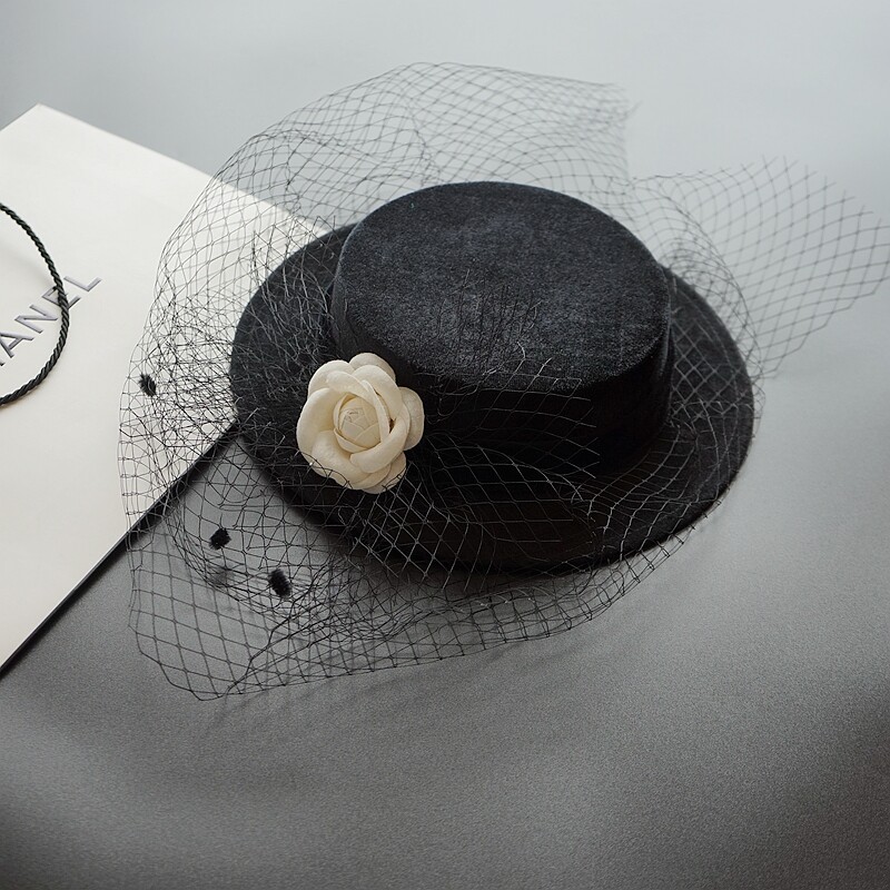 Элегантная черная шляпа Лайла в стиле ретро во французском стиле Хепберн, женская атласная сетчатая шляпа в британском стиле, головной убор для светской львицы