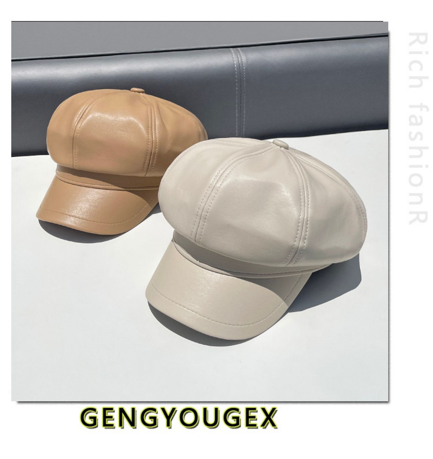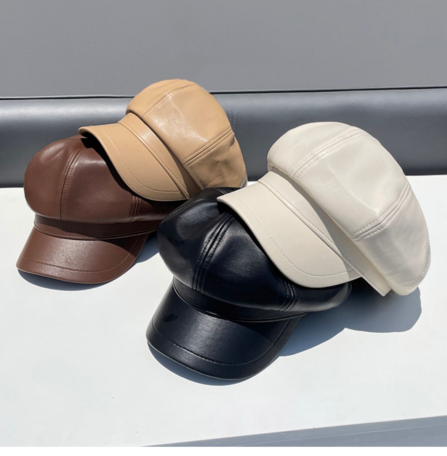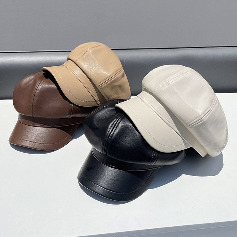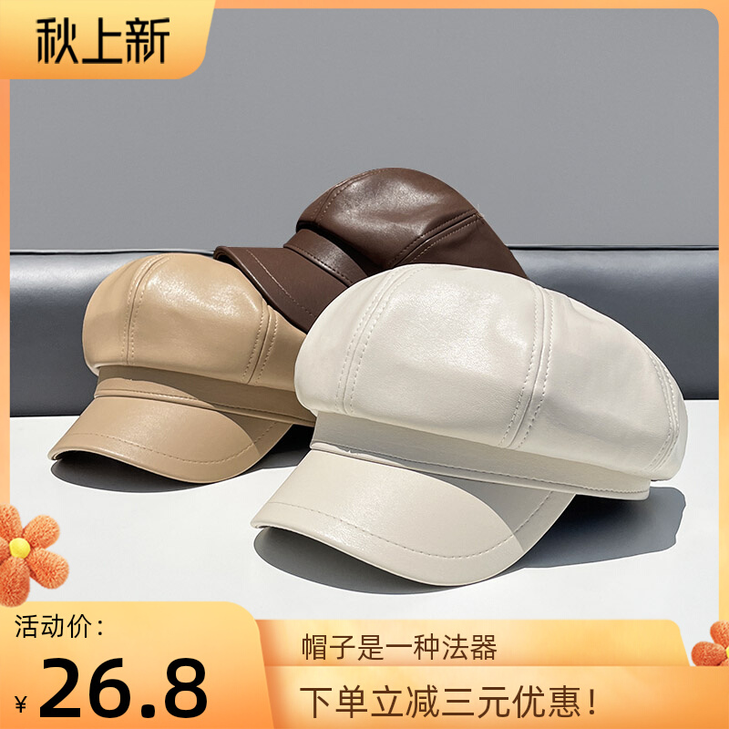 Полиуретановая осенняя демисезонная ретро шапка, в корейском стиле, популярно в интернете