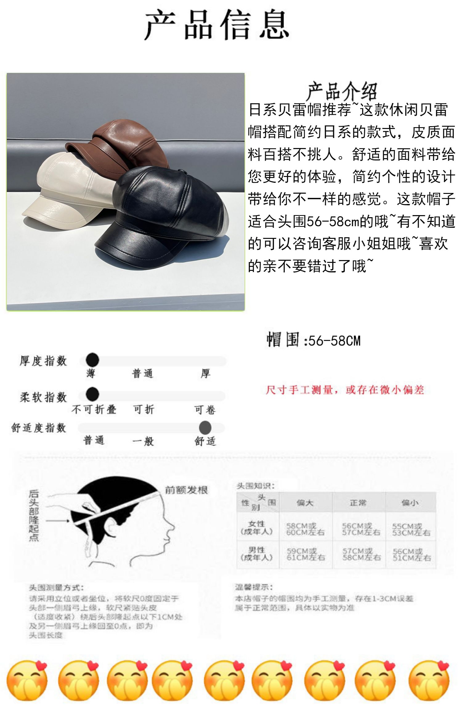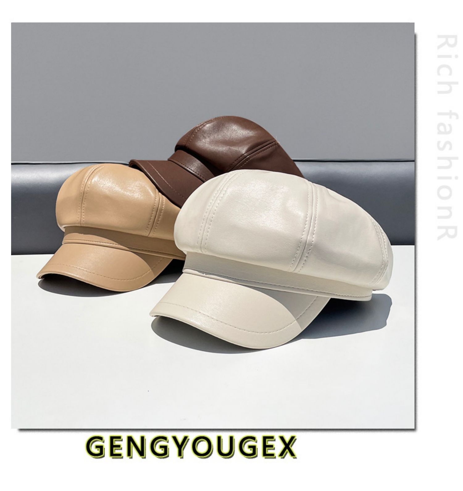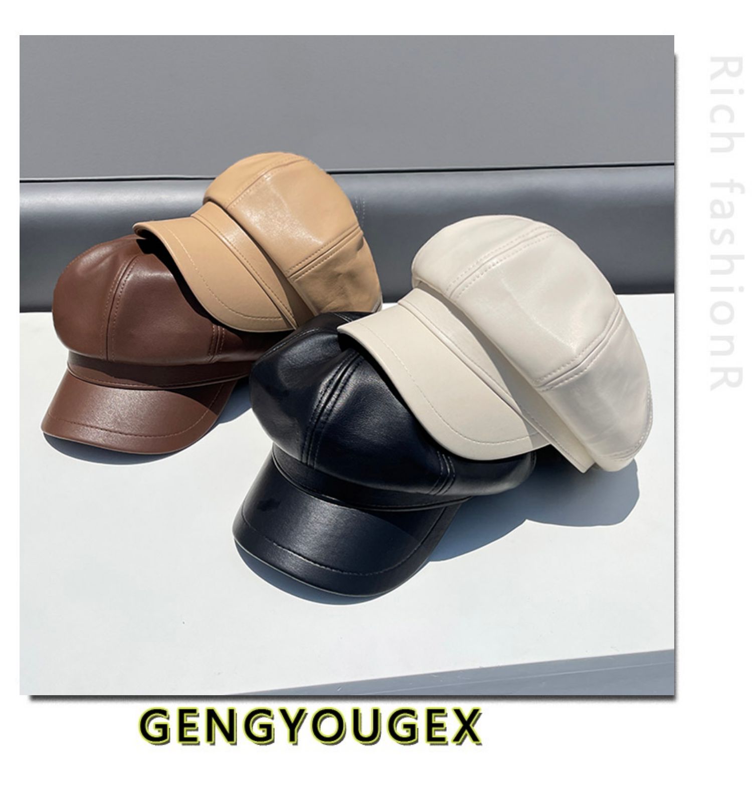 Полиуретановая осенняя демисезонная ретро шапка, в корейском стиле, популярно в интернете