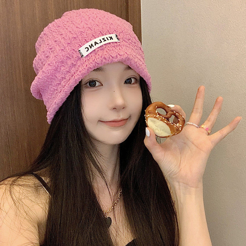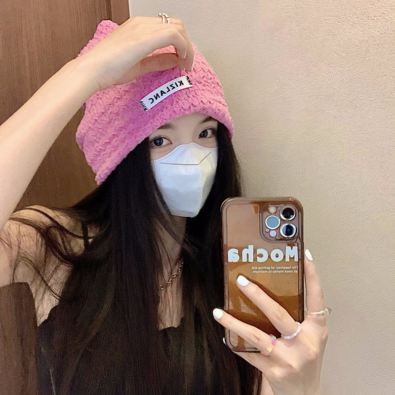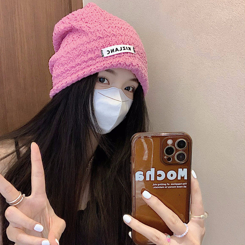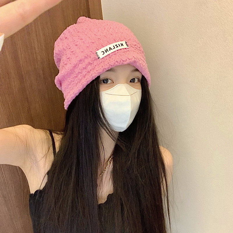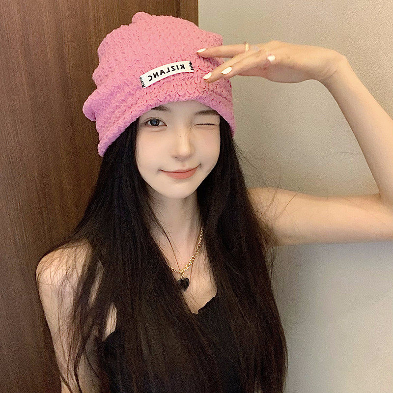Розовая цветная осенняя тонкая брендовая шапка, в корейском стиле