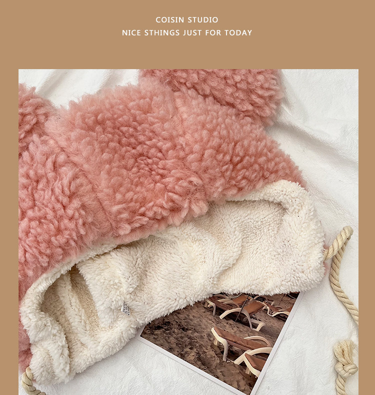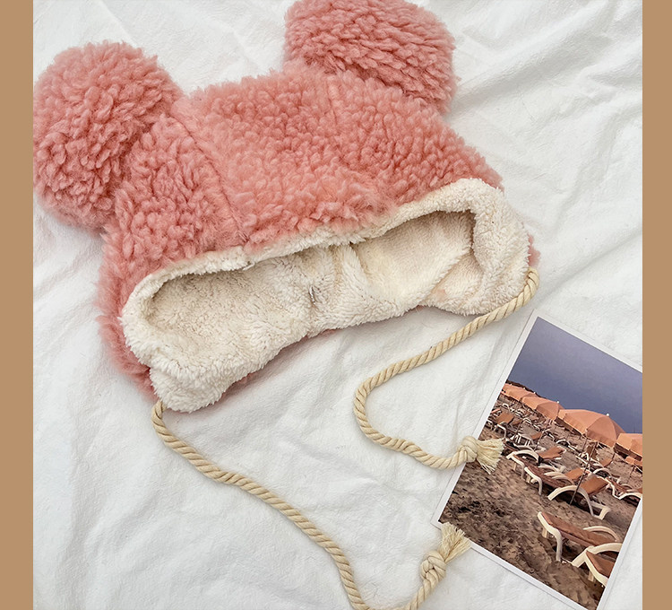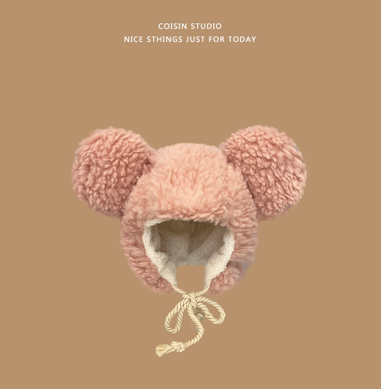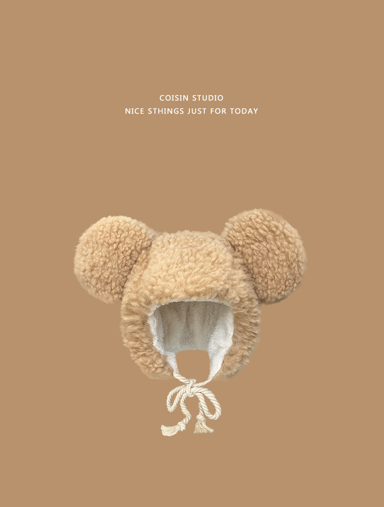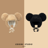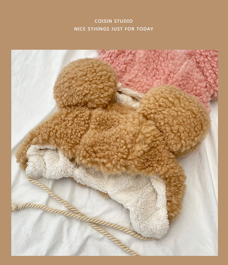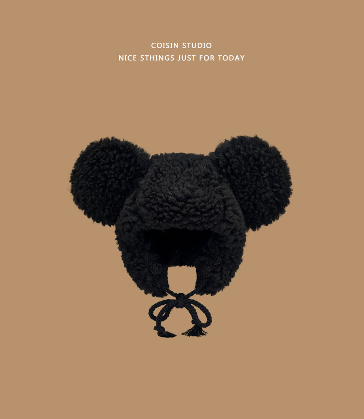 Милая большая бархатная зимняя удерживающая тепло ветрозащитная шапка, в корейском стиле, с медвежатами, популярно в интернете
