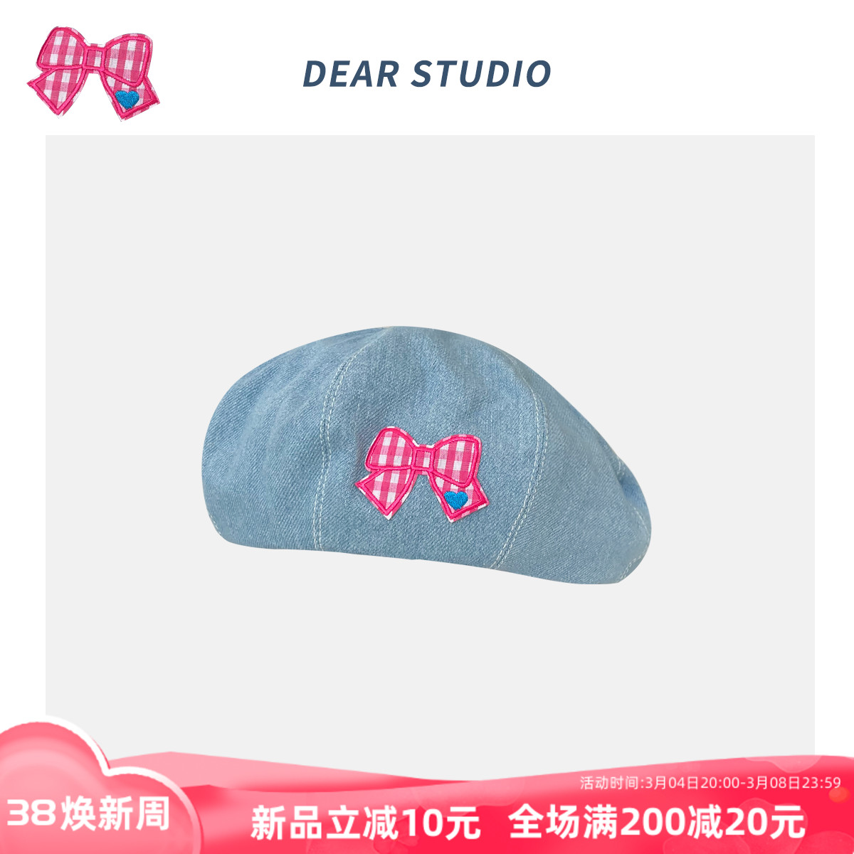 Японский милый джинсовый универсальный берет с бантиком, простой и элегантный дизайн, популярно в интернете