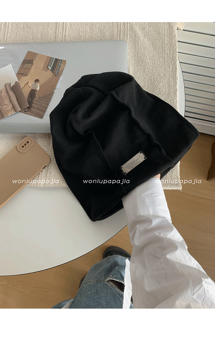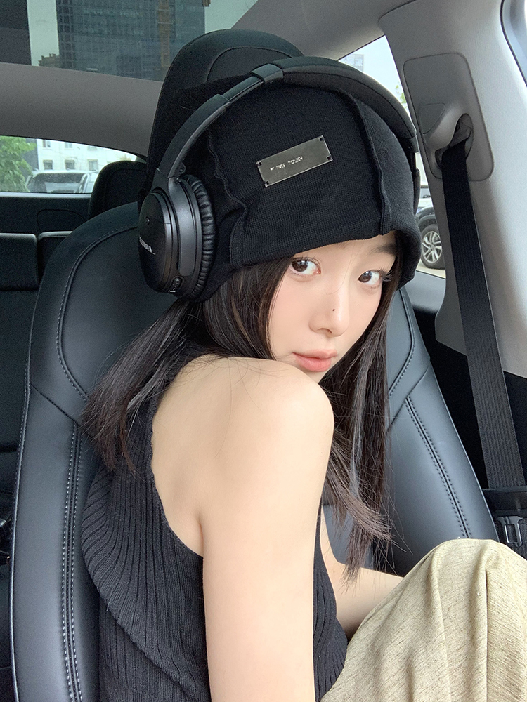 Черные демисезонные вместительные и большые улитки, вязаная шапка, изысканный стиль