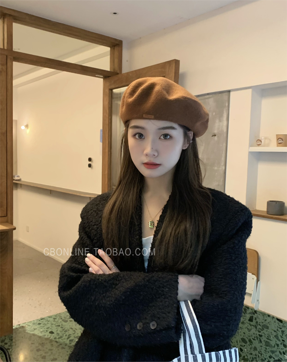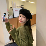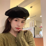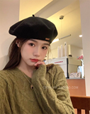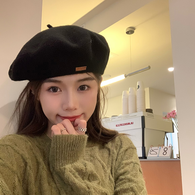 Демисезонный универсальный берет, демисезонная шерстяная черная раскраска, модная шапка, популярно в интернете