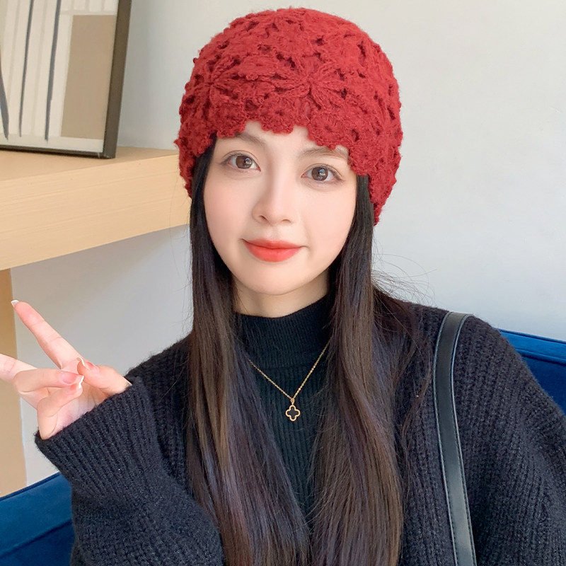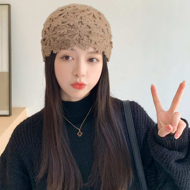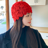 Японская ниша ретро ручной работы с двойным слоем крючок крючок цветочный булочка шляпа шляпа женская шляпа с капюшоном осень и зимняя корейская версия модной вязаной шерсти