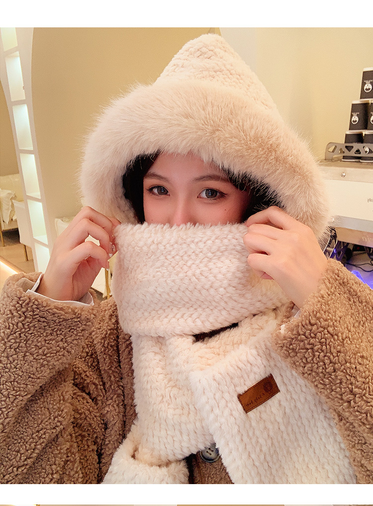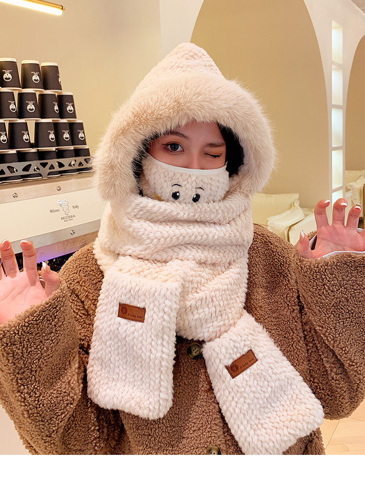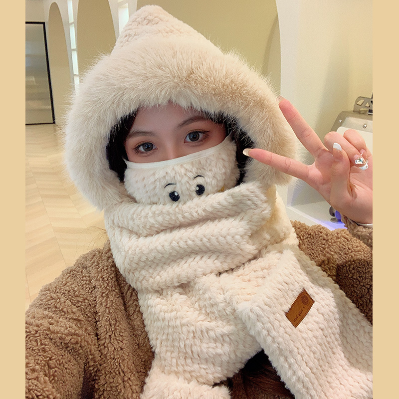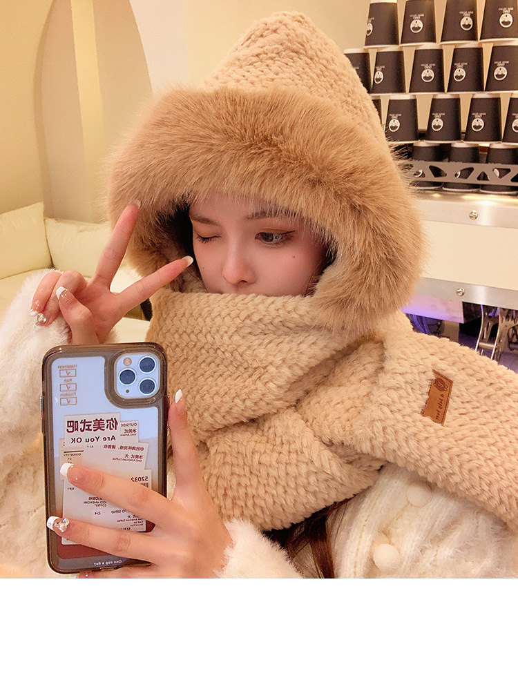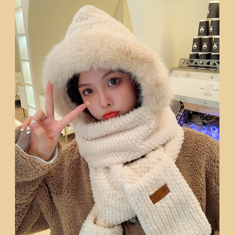 Милая бархатная шапка, демисезонный ветрозащитный удерживающий тепло шарф, плюшевая, увеличенная толщина