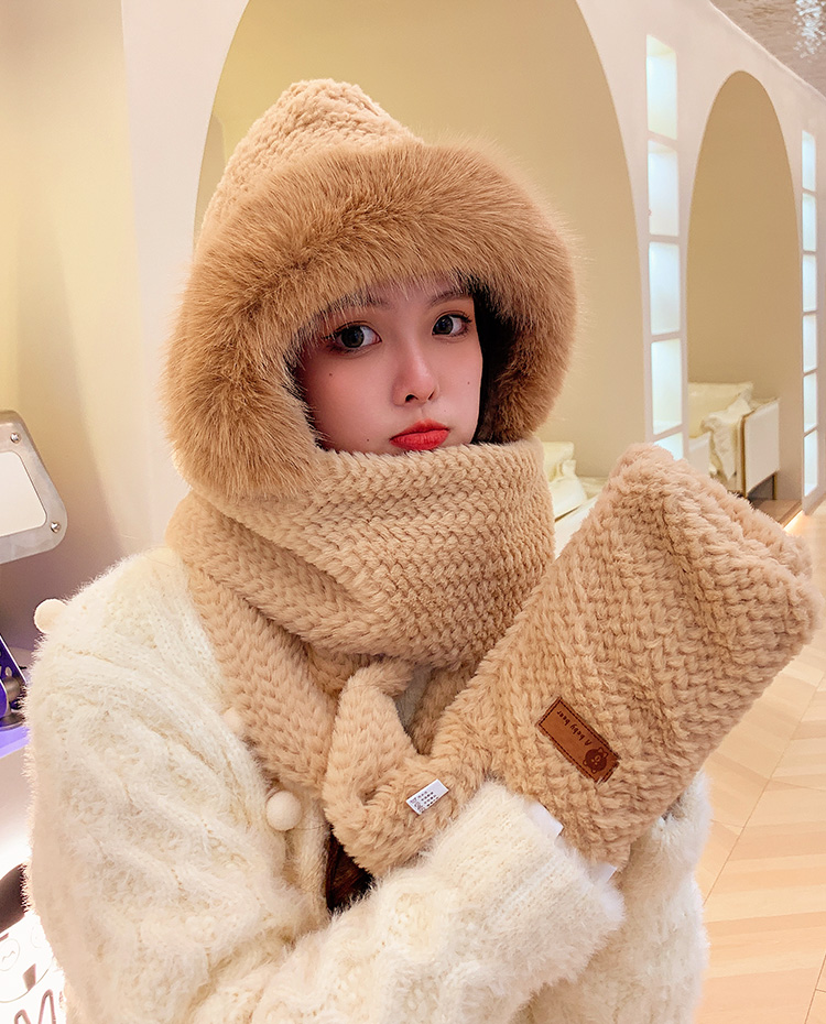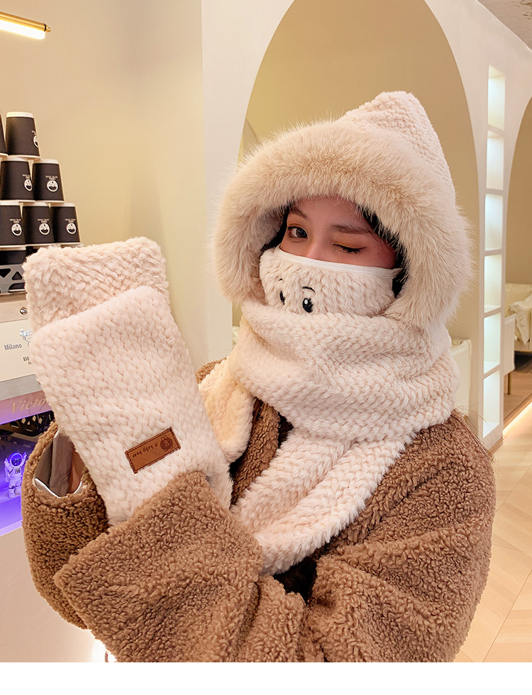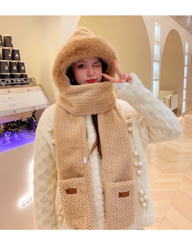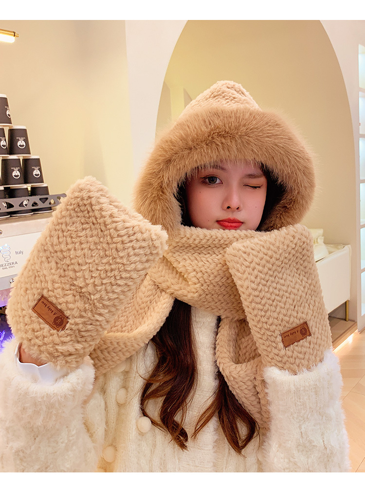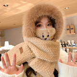Милая бархатная шапка, демисезонный ветрозащитный удерживающий тепло шарф, плюшевая, увеличенная толщина