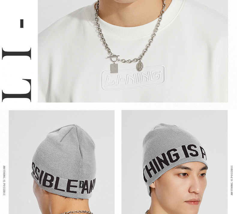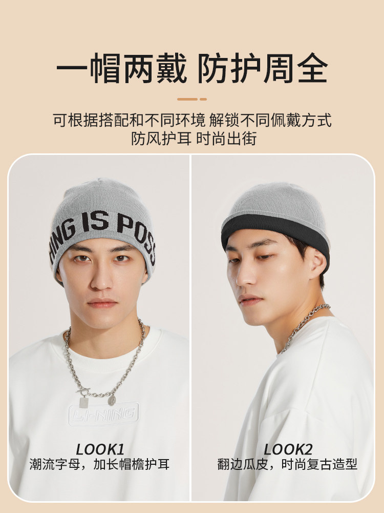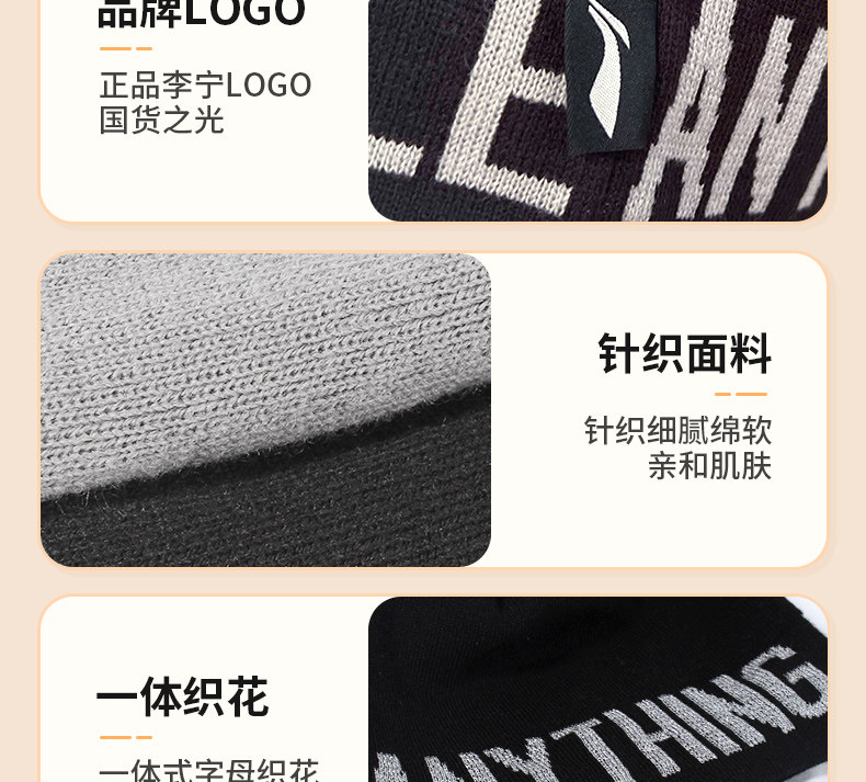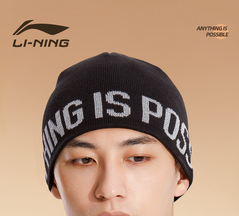 Li Ning, мужская удерживающая тепло демисезонная черная цветная шерстяная универсальная вязаная шапка для влюбленных