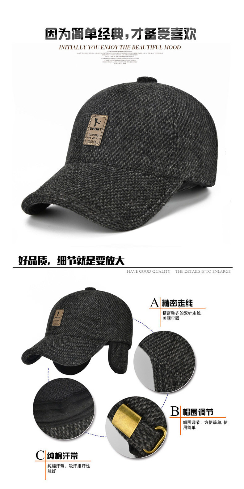 - E-235-S Стандартная шерстяная шерстяная защита ушей-темноты с серым