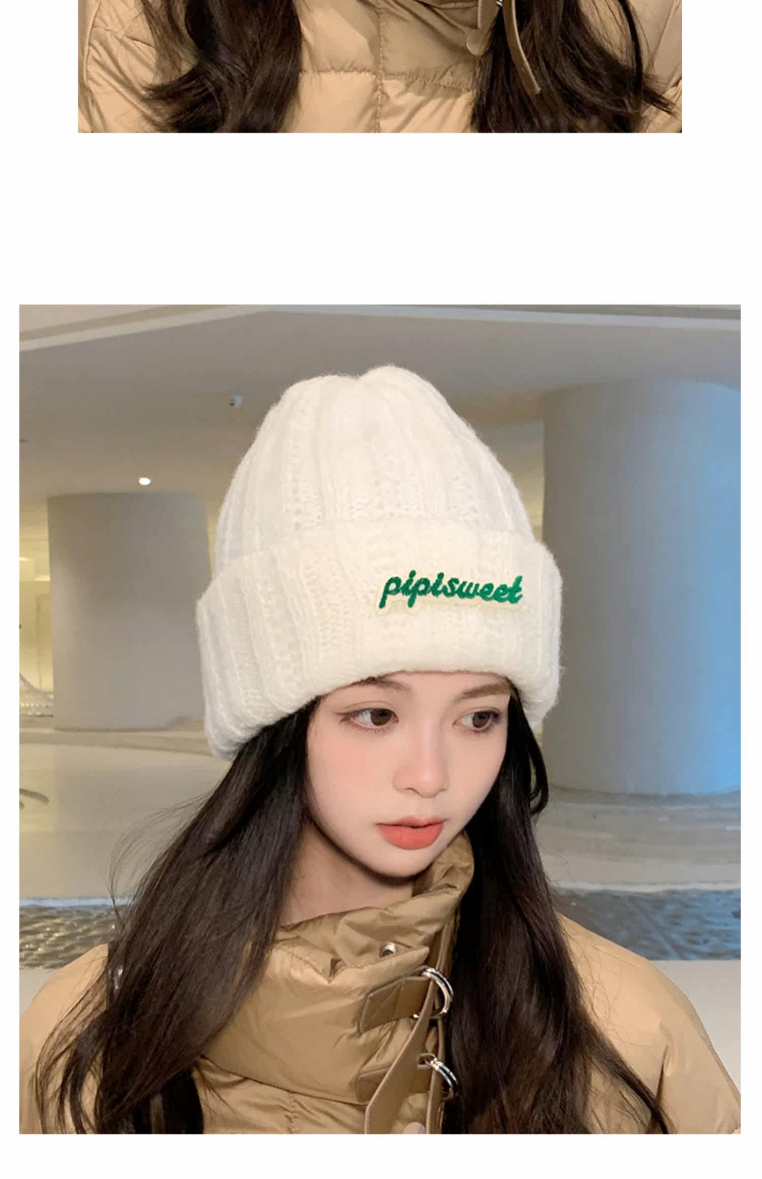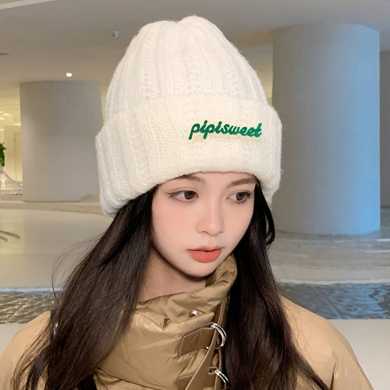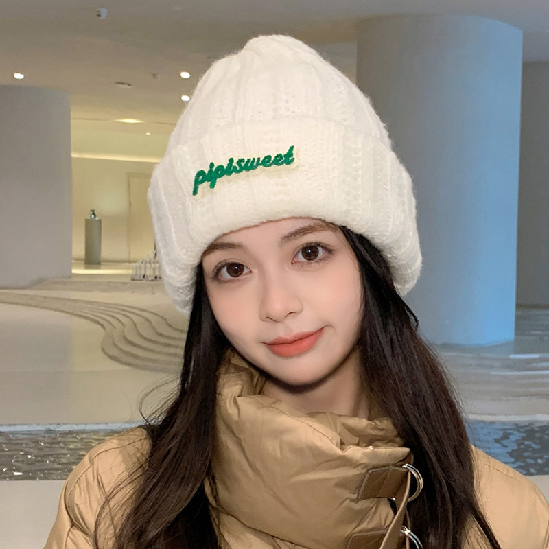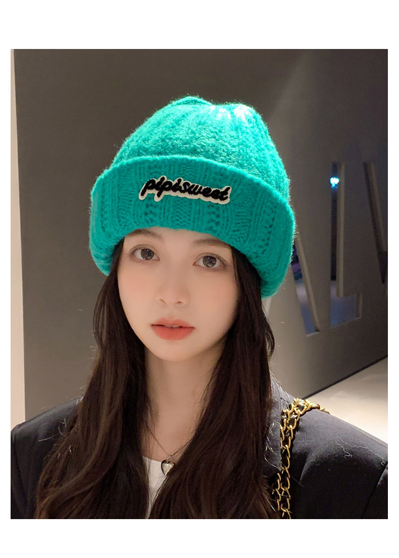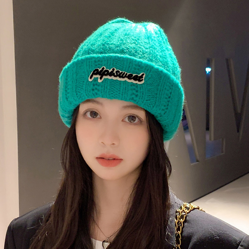Зеленая цветная шерстяная зимняя утепленная модная вязаная шапка, в корейском стиле, в западном стиле