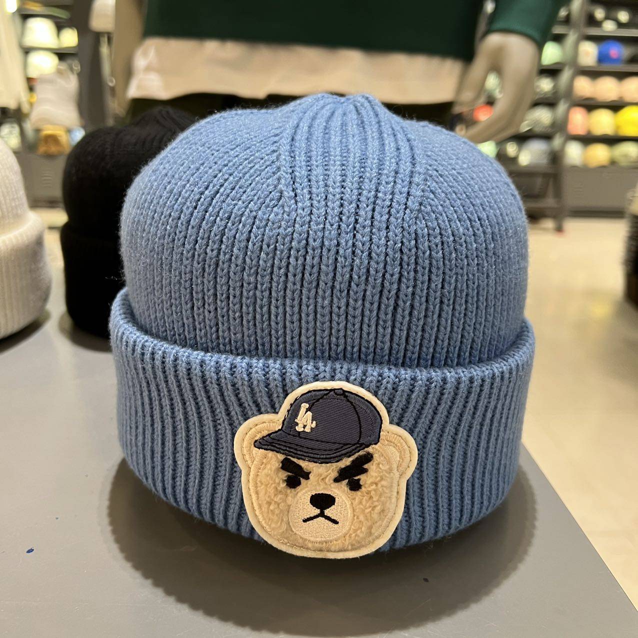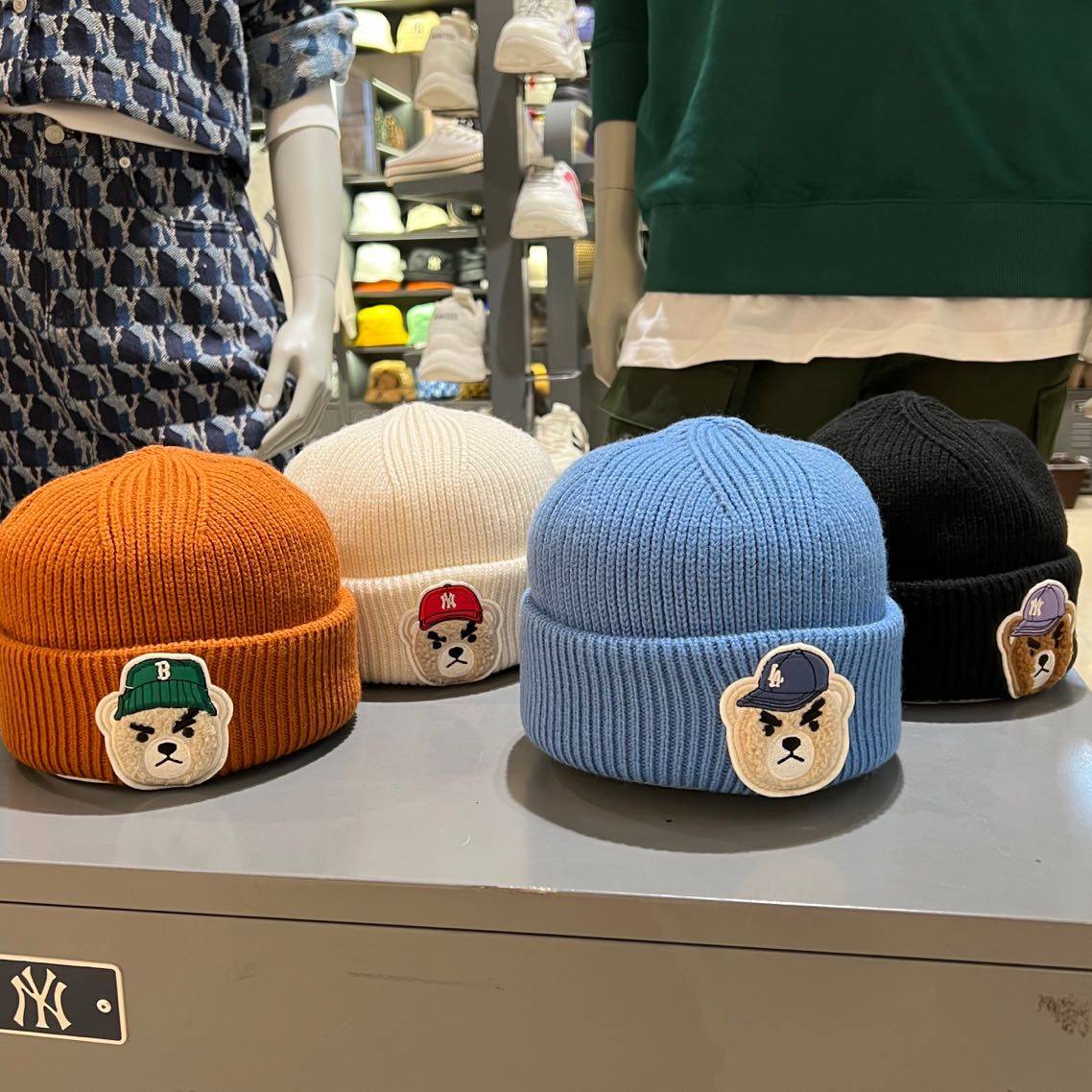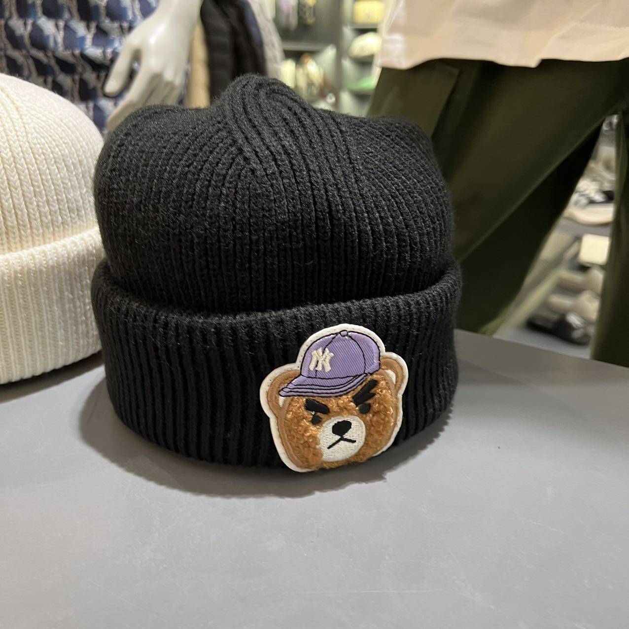 MLB, демисезонная трехмерная бархатная мультяшная милая шерстяная вязаная шапка подходит для мужчин и женщин, с медвежатами