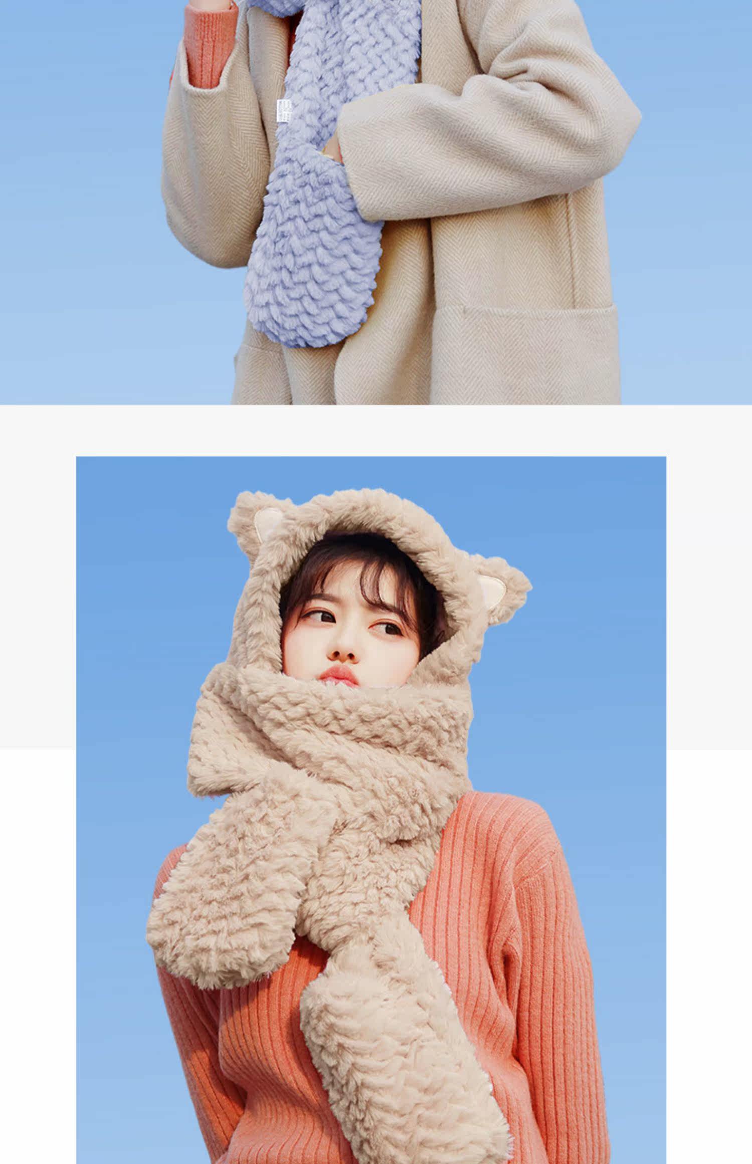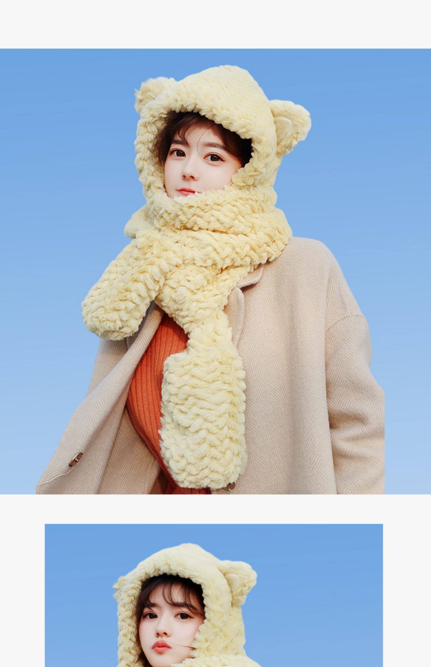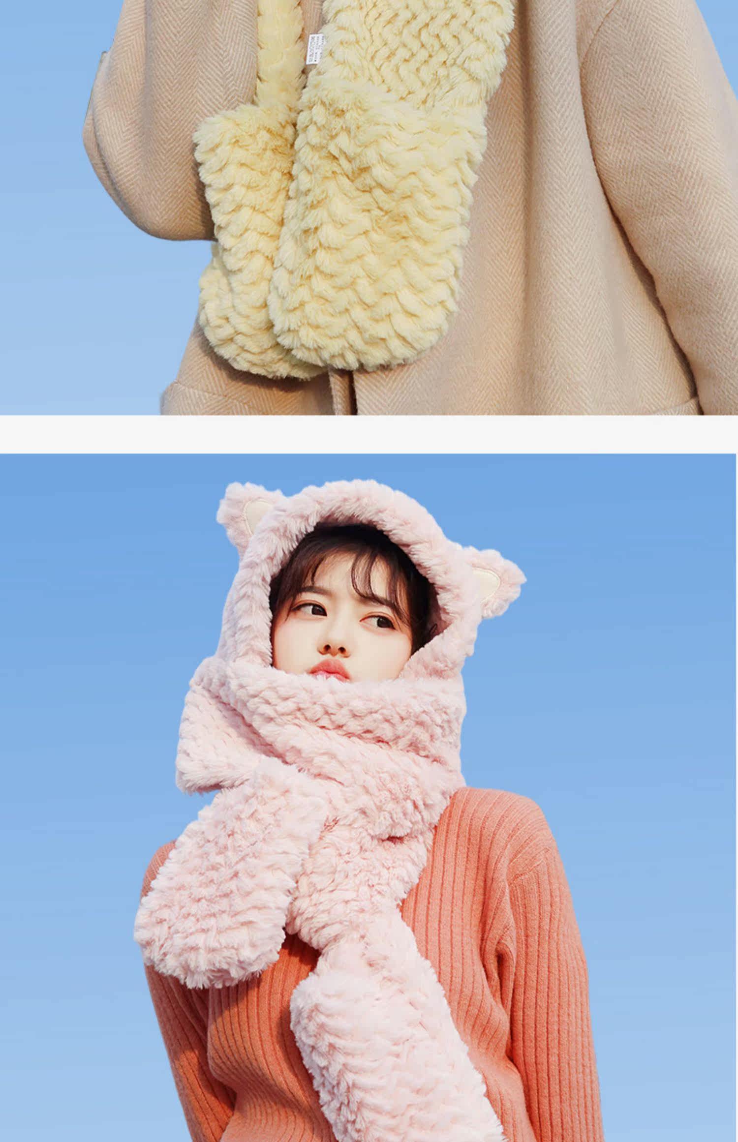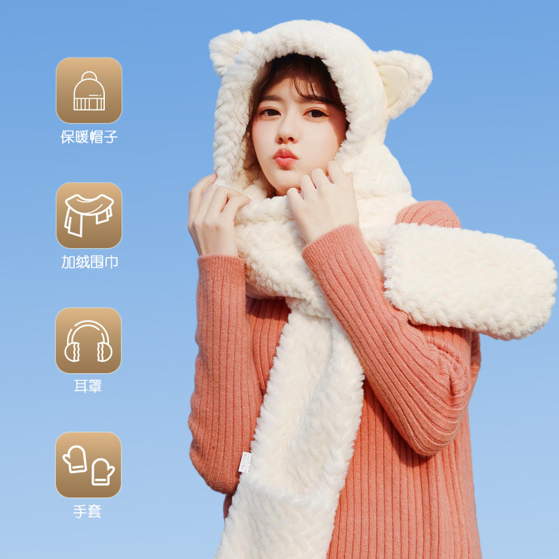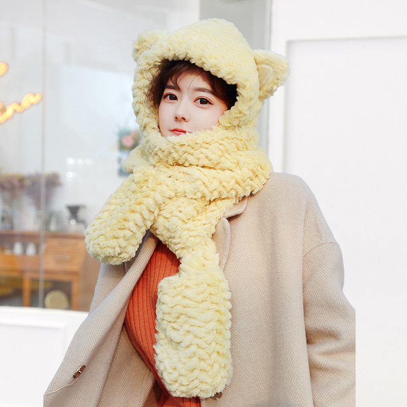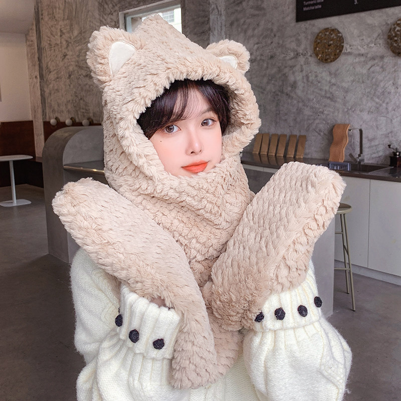Шапка, бархатный зимний милый шарф, универсальный удерживающий тепло комплект с капюшоном, с медвежатами, 3 предмета