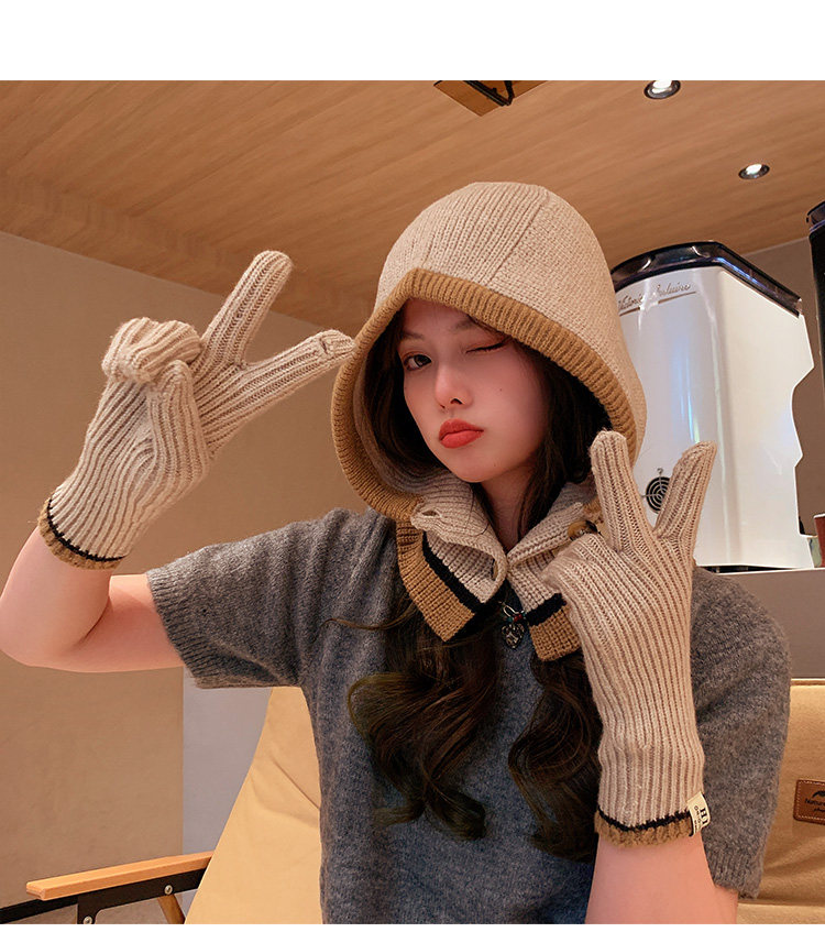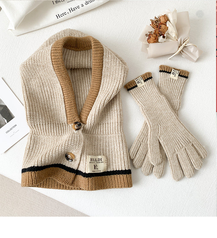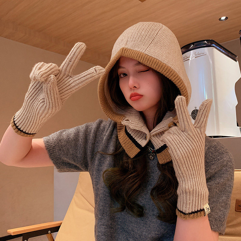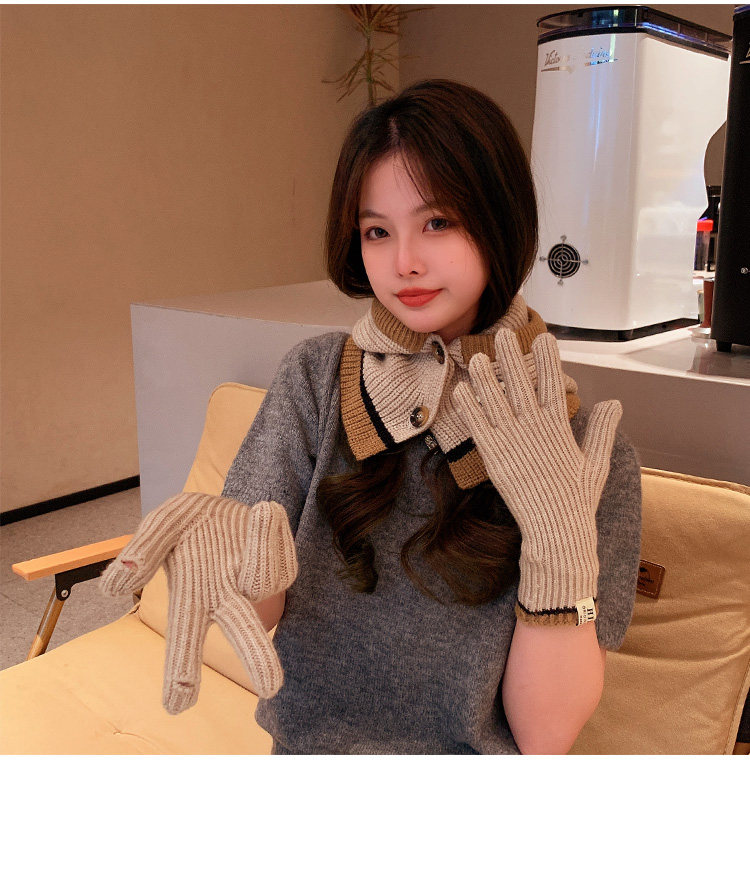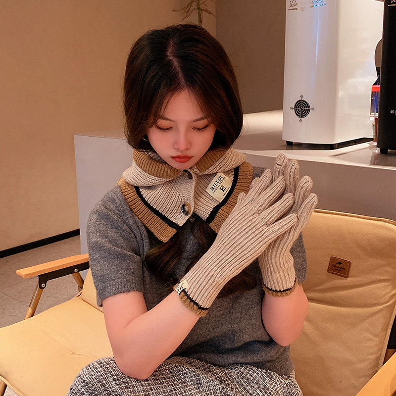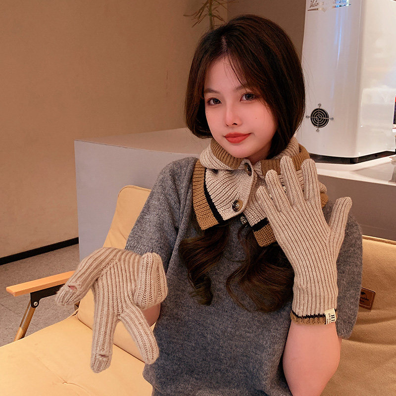 Демисезонные универсальные трикотажные удерживающие тепло перчатки, комплект, шарф