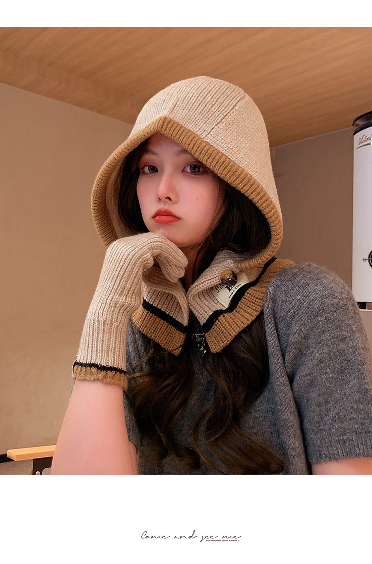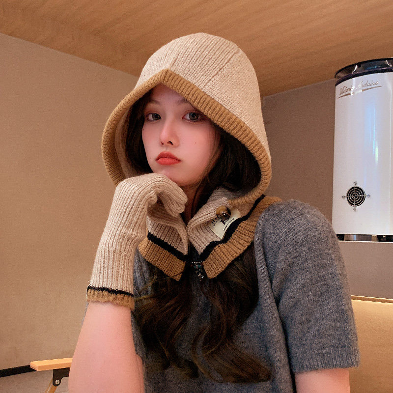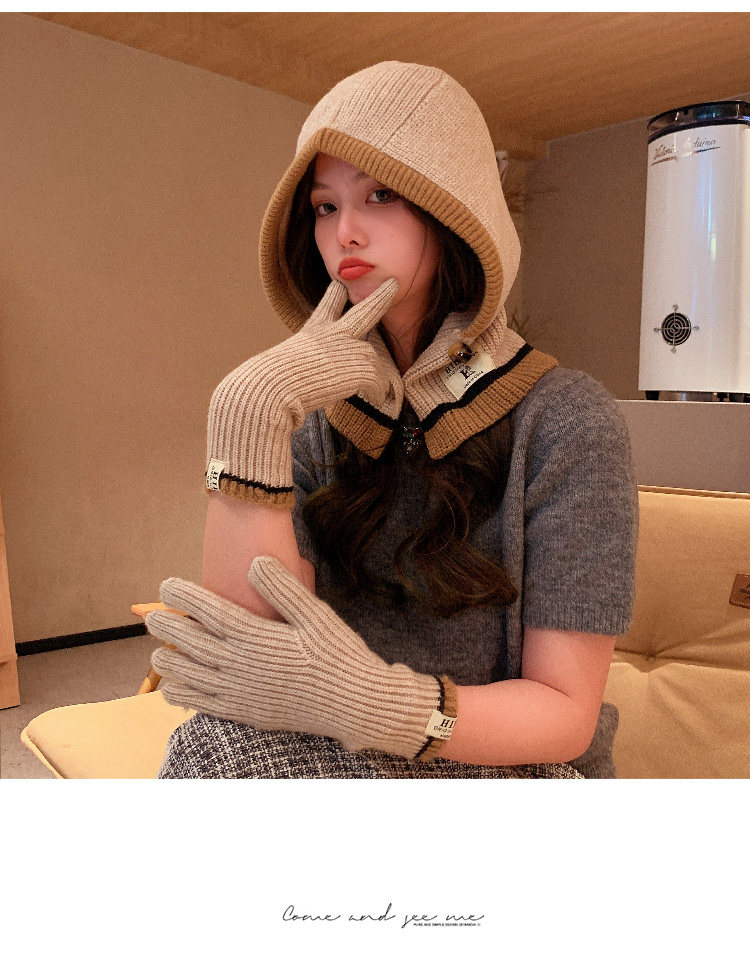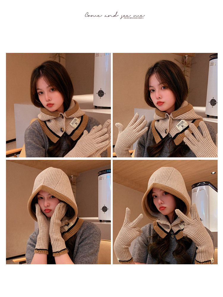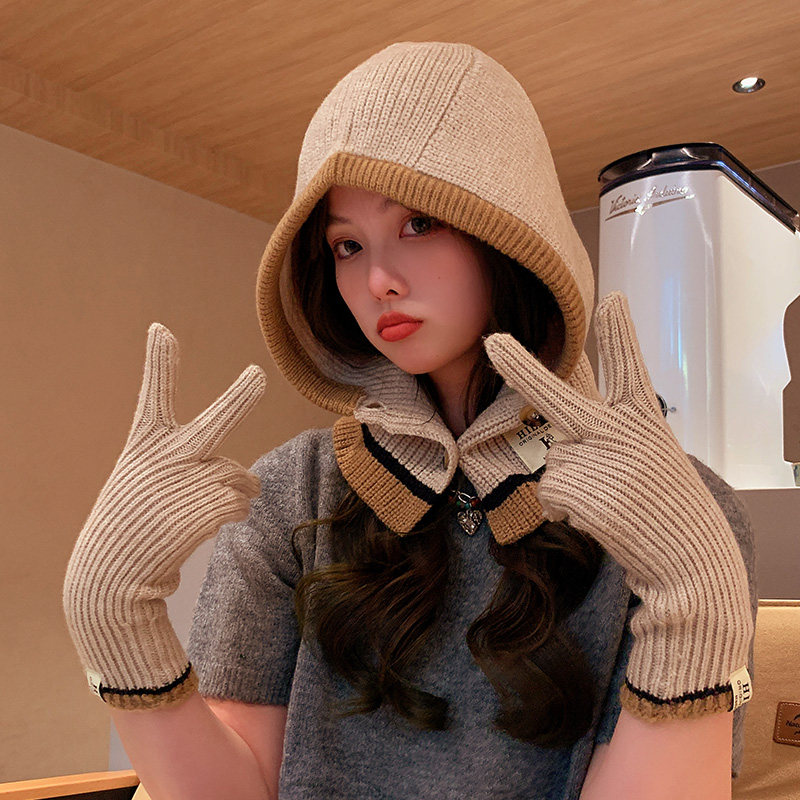 Демисезонные универсальные трикотажные удерживающие тепло перчатки, комплект, шарф