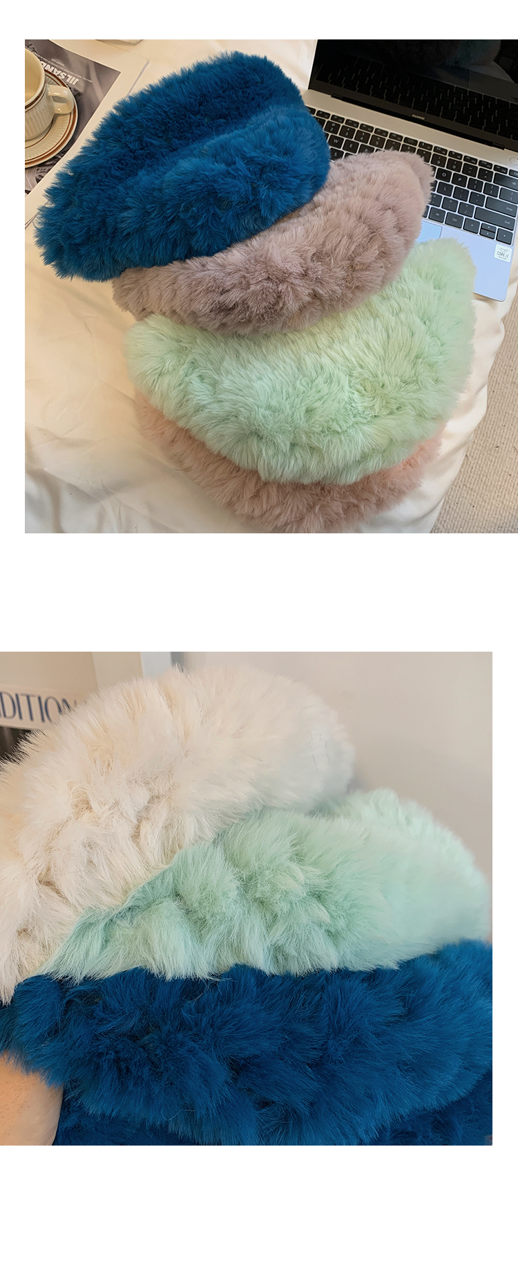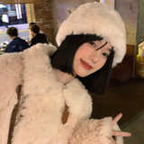 Бархатная демисезонная японская трикотажная шерстяная белая цветная удерживающая тепло шапка, в корейском стиле