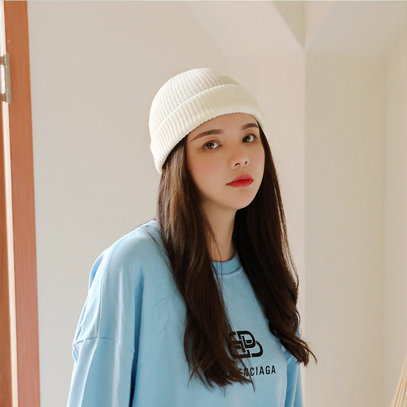 - Шерстяная вязаная дыня кожаная шляпа-милк белый