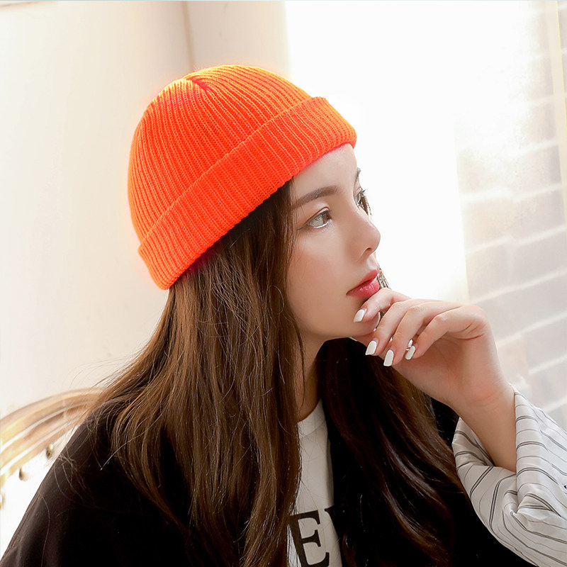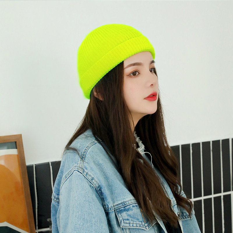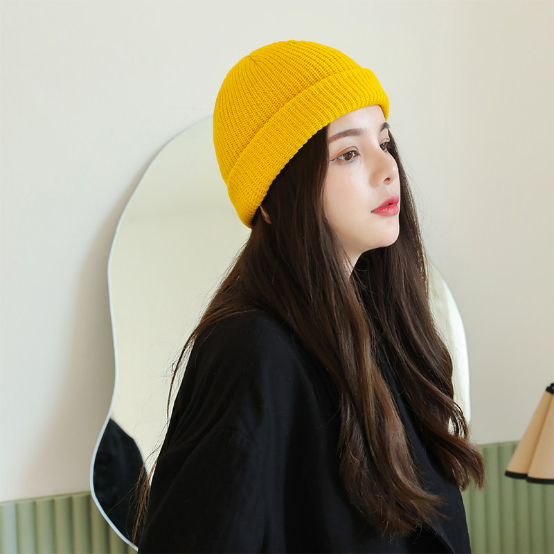 - Шерстяная вязаная дыня кожаная шляпа-желтая