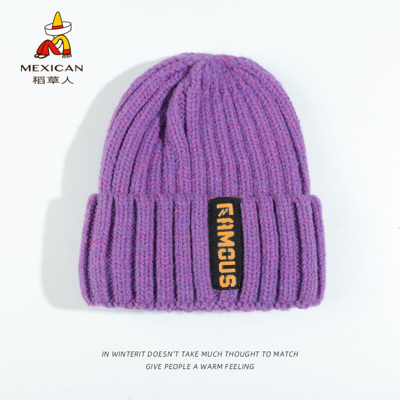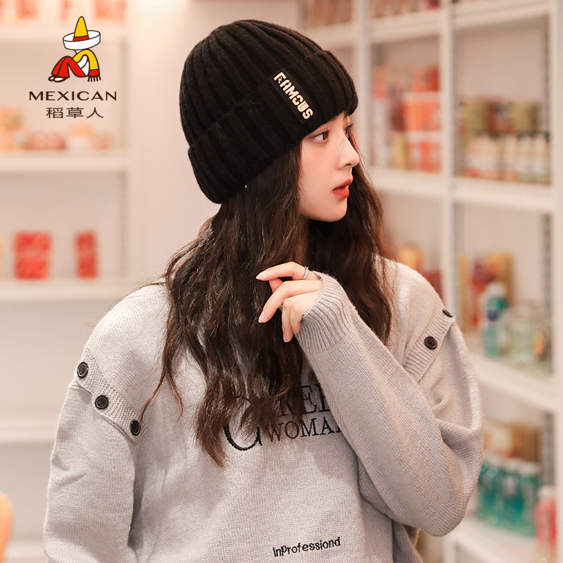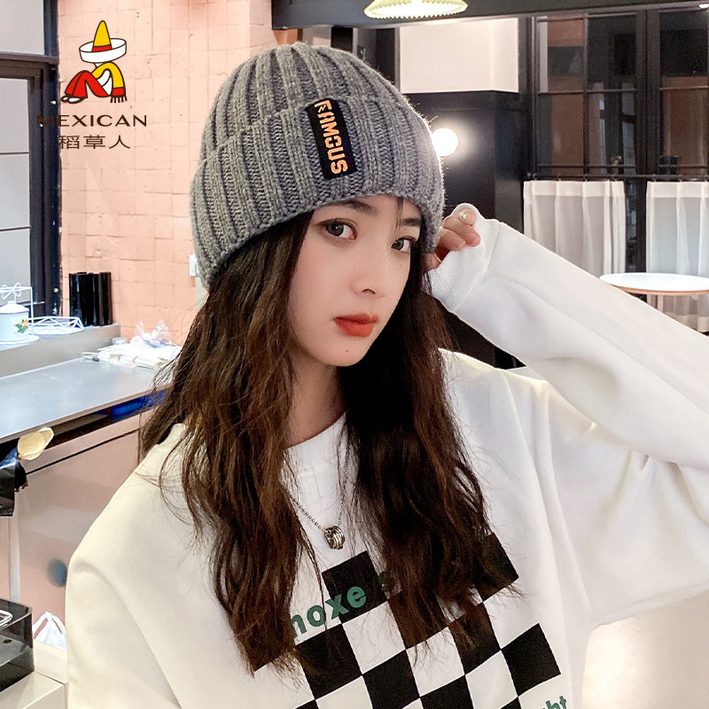 Tide, трендовая удерживающая тепло шерстяная вязаная шапка, в корейском стиле, увеличенная толщина