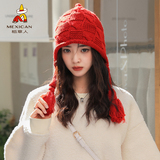 Демисезонная модная милая плетеная красная удерживающая тепло шерстяная вязаная шапка для школьников