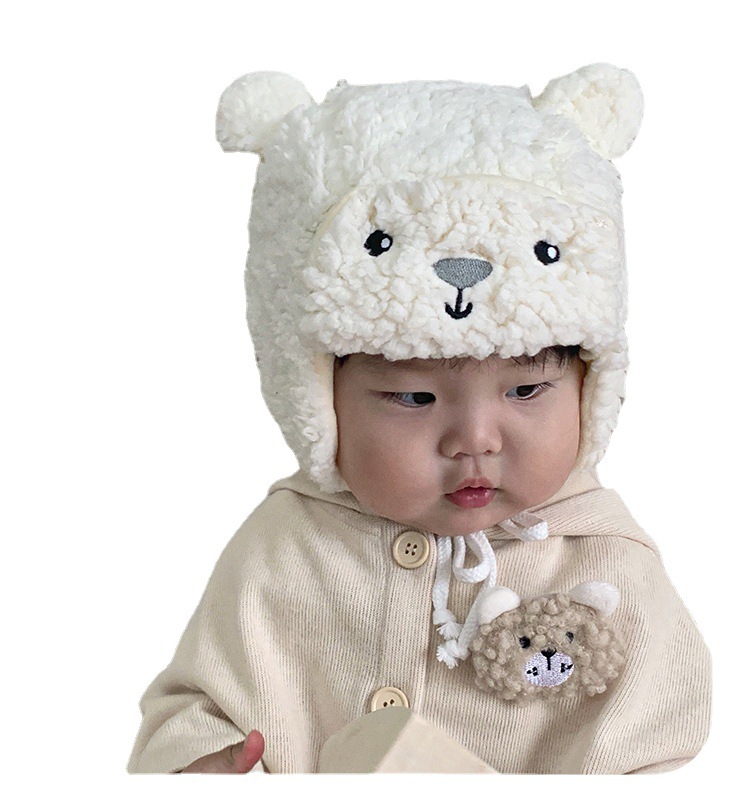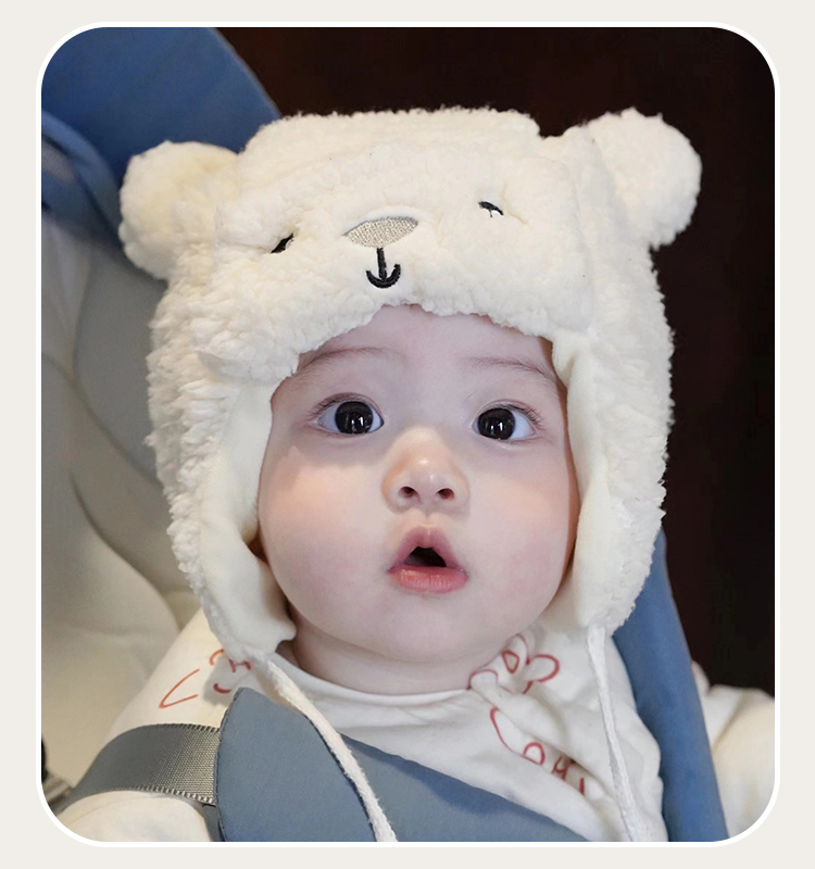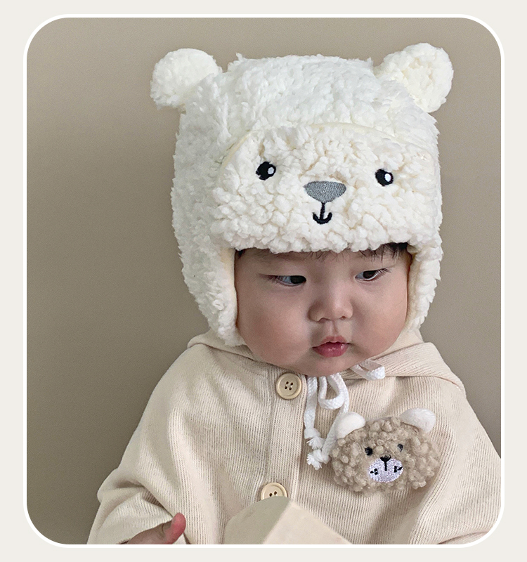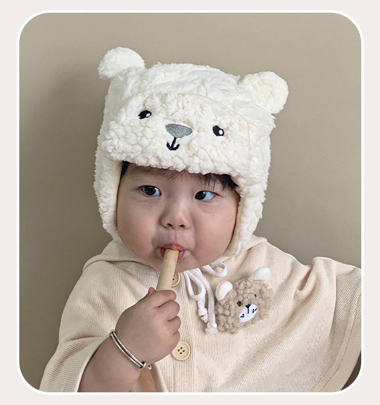 Детская демисезонная бархатная милая ветрозащитная удерживающая тепло шапка для раннего возраста, с медвежатами