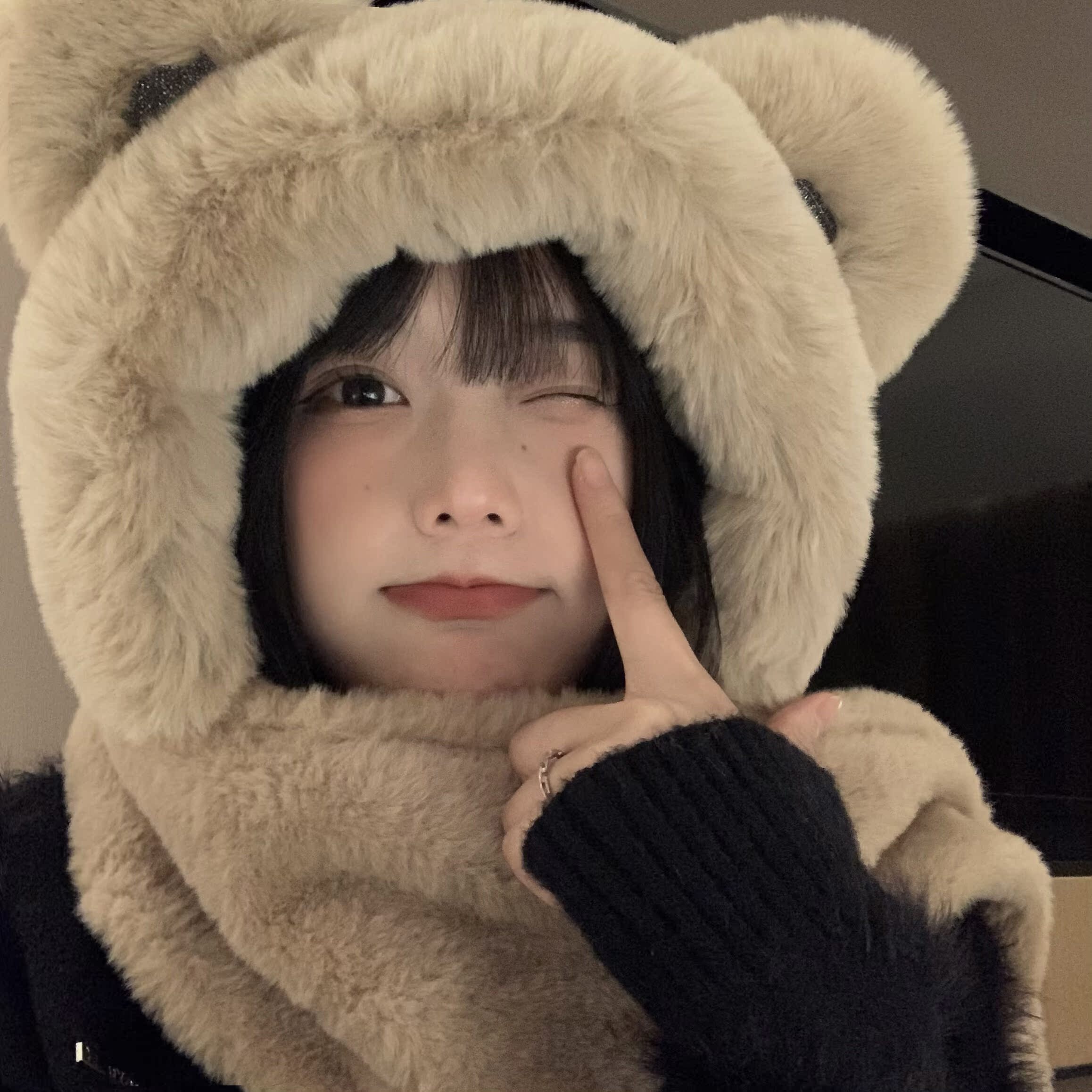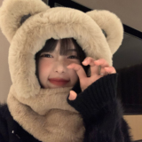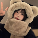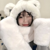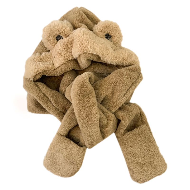 Шапка, зимний шарф, мультяшные милые бархатные удерживающие тепло перчатки, комплект, с медвежатами, в корейском стиле, плюшевая, 3 предмета