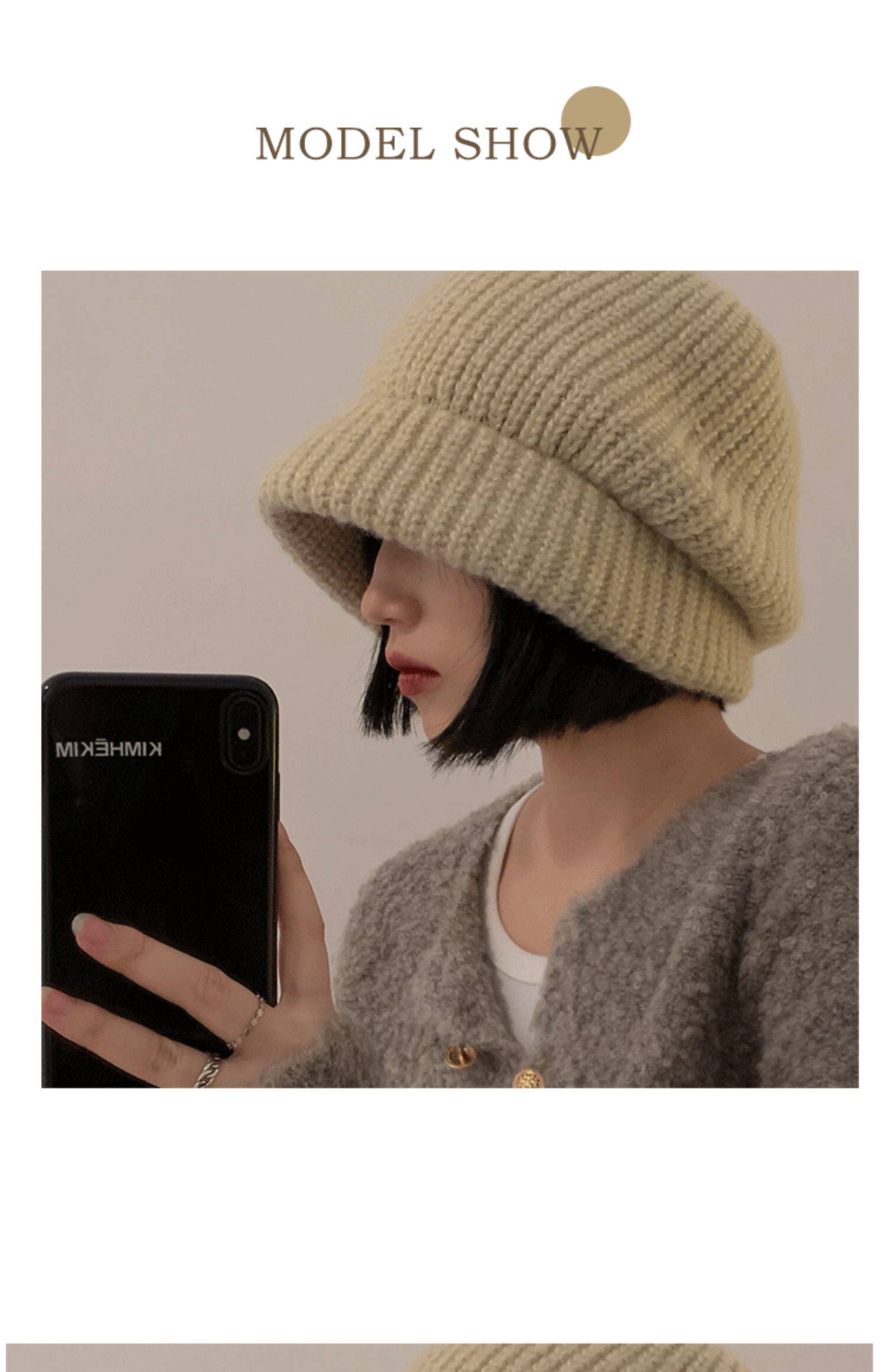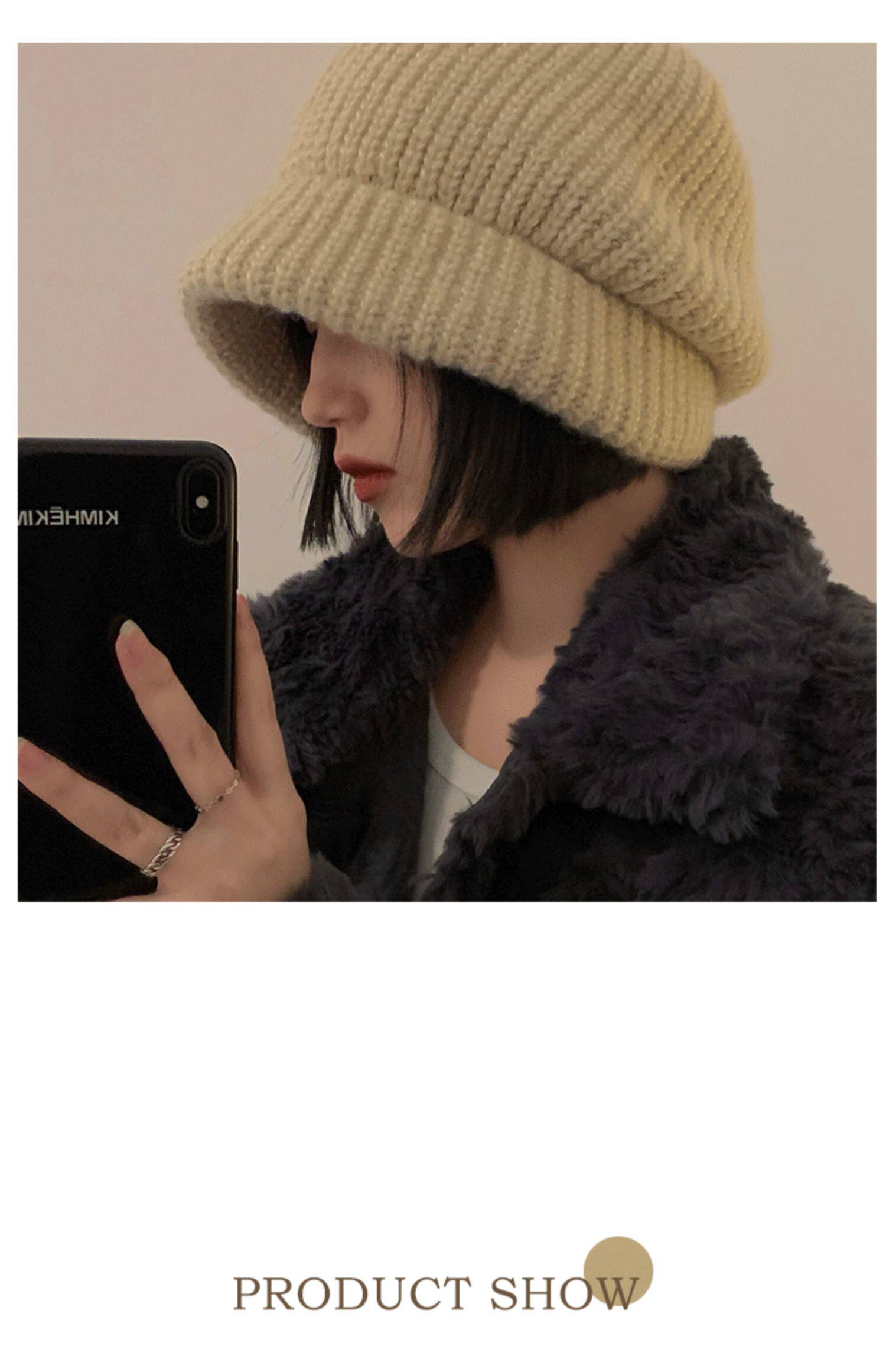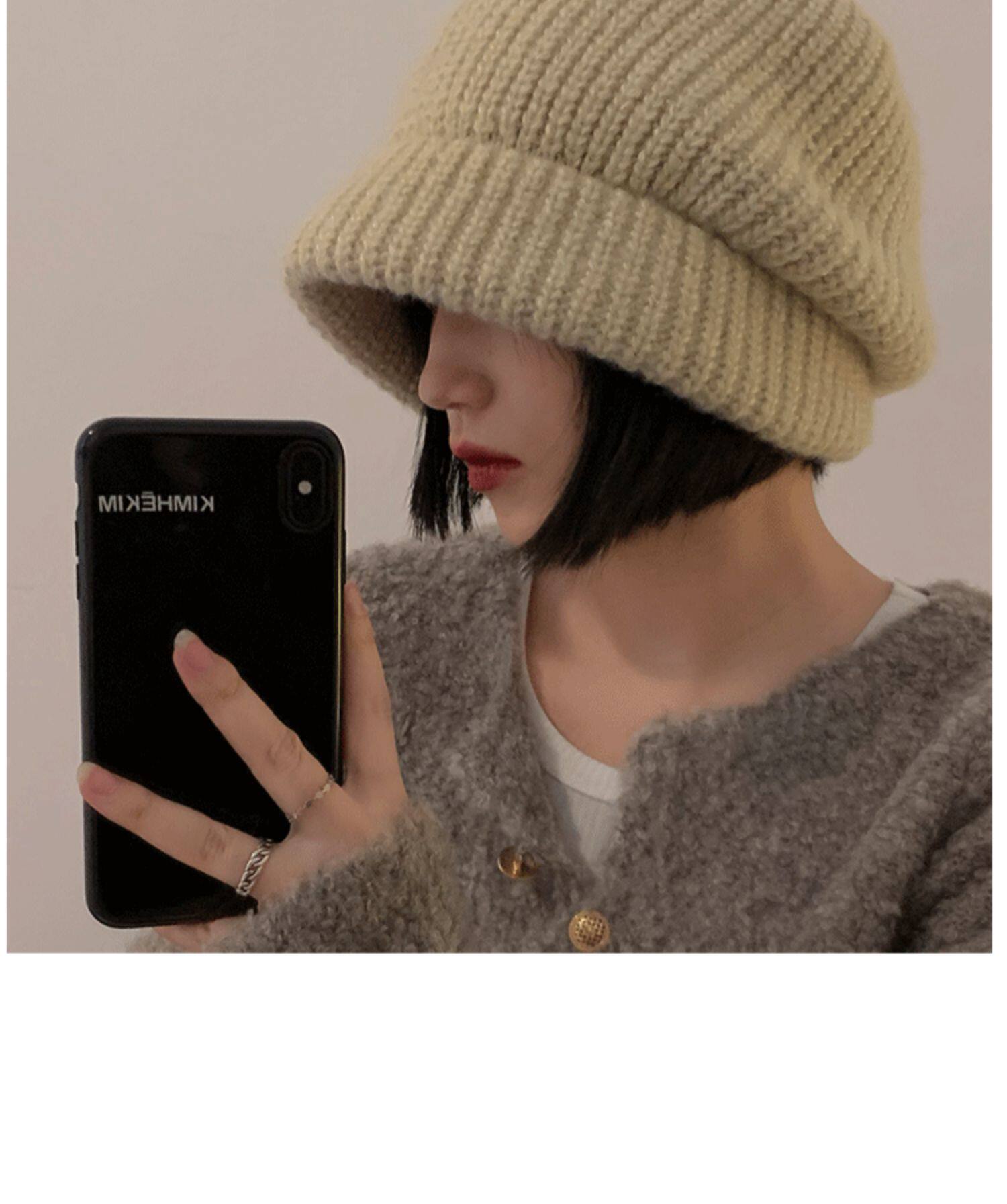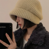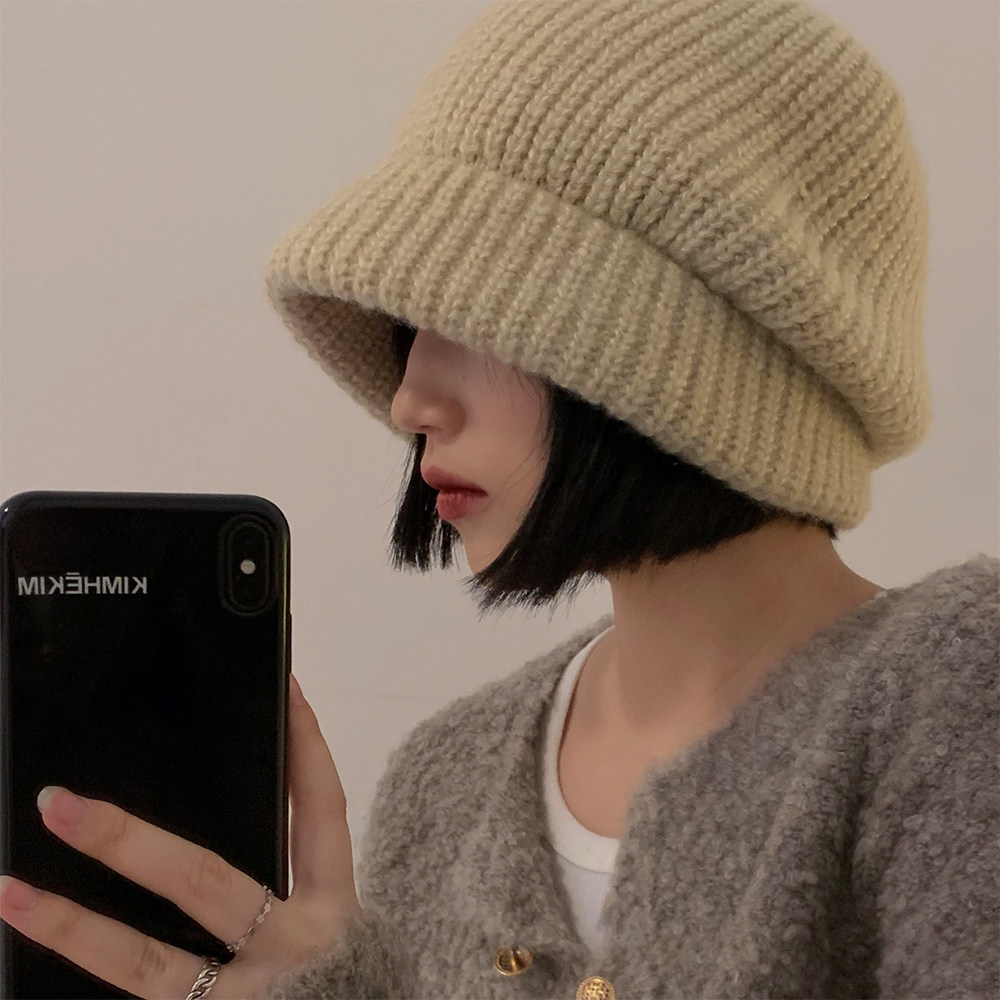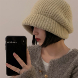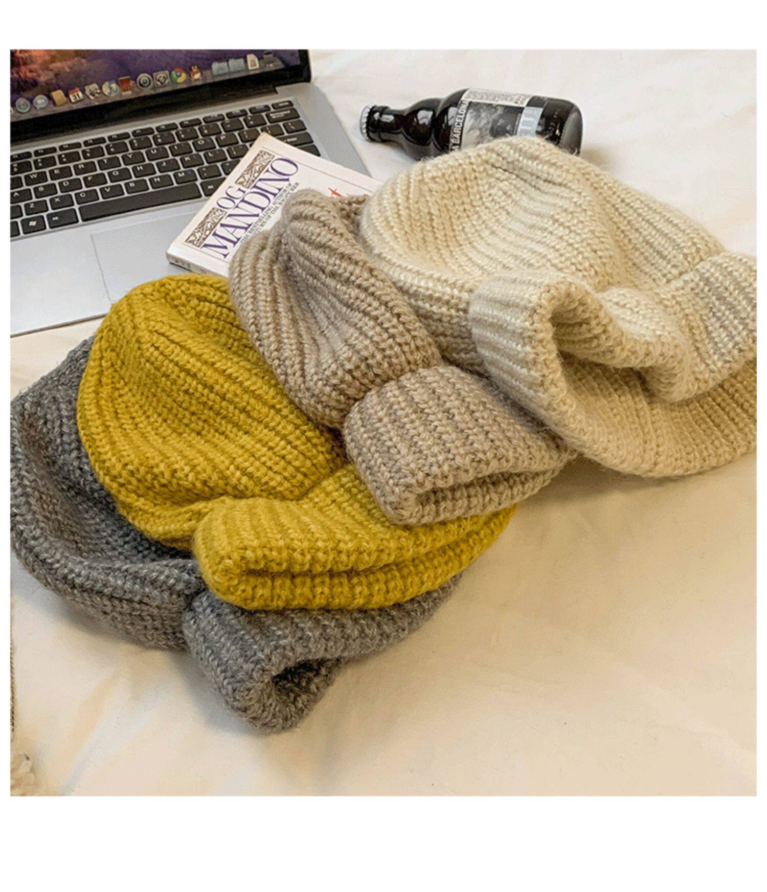 Трикотажная демисезонная японская бежевая удерживающая тепло шерстяная шапка