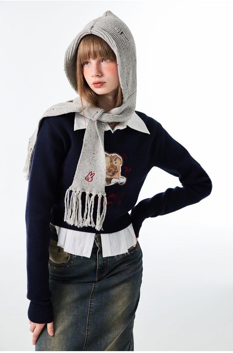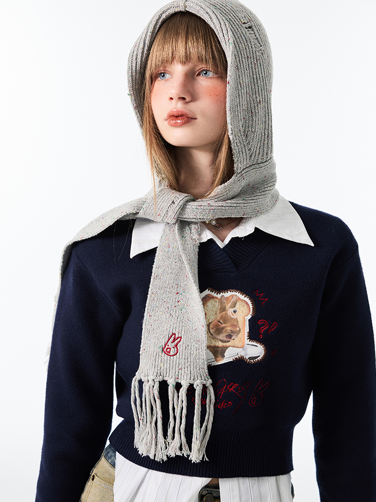 Шапка, удерживающий тепло демисезонный шерстяной трикотажный шарф