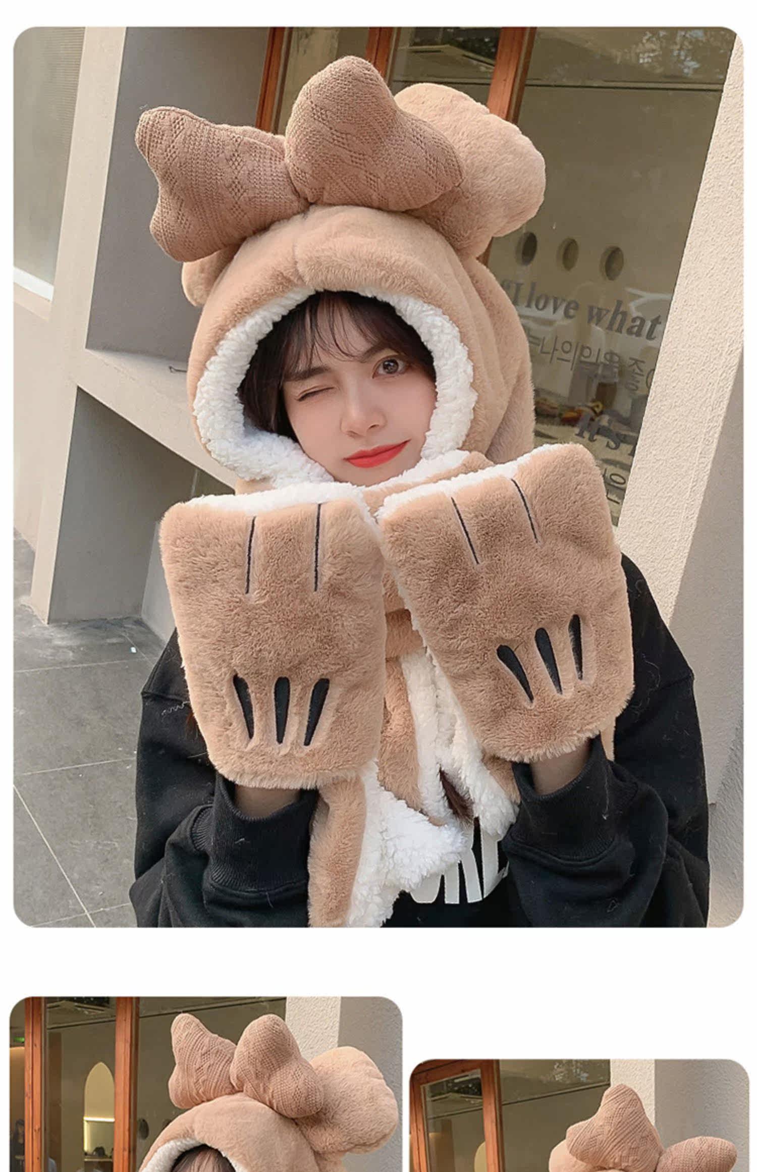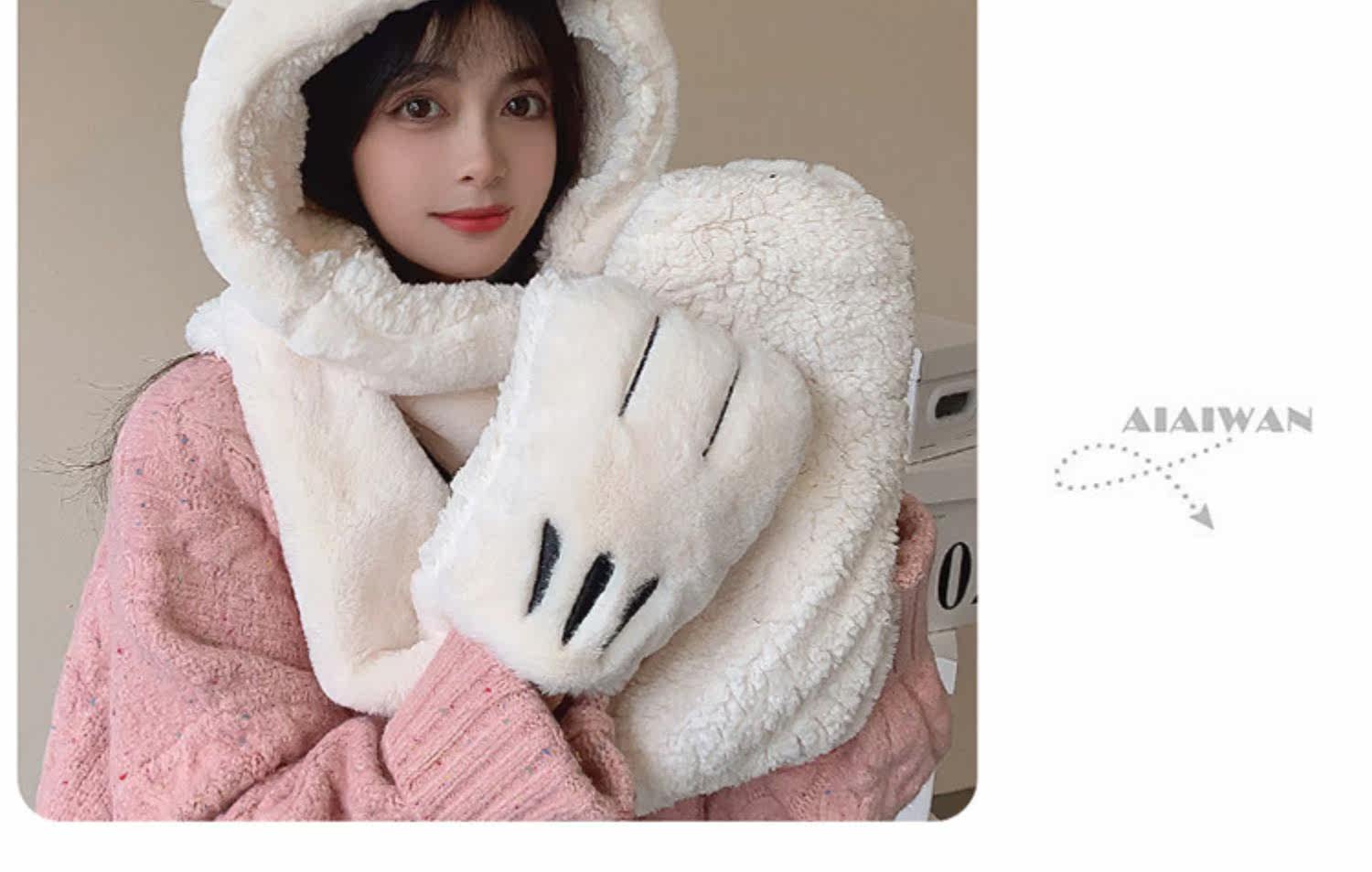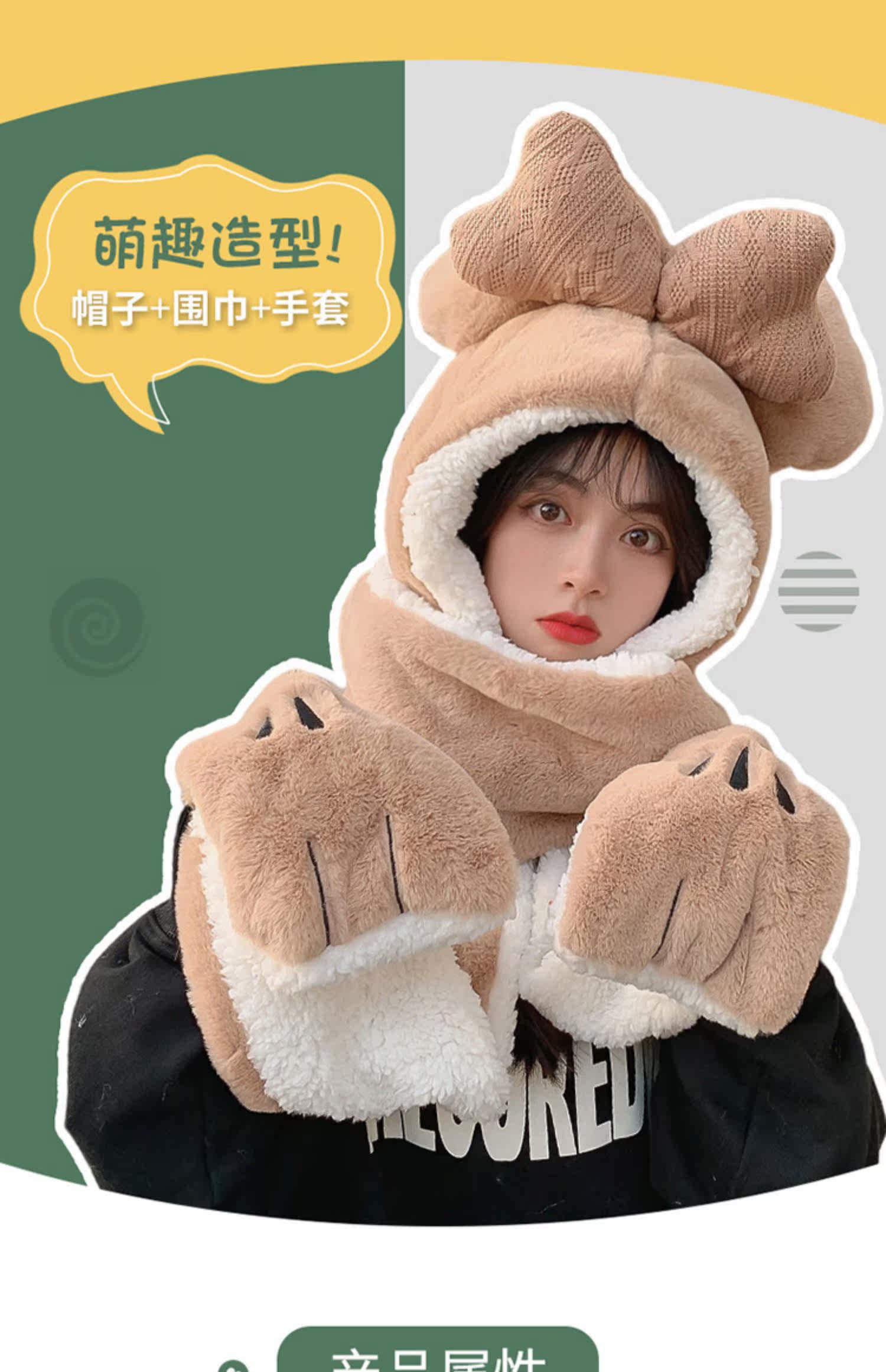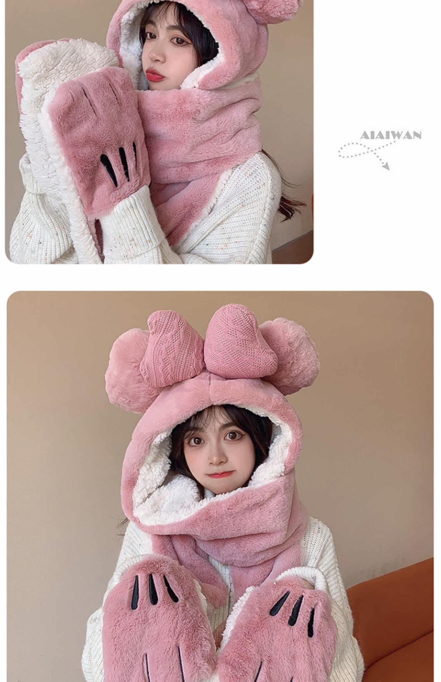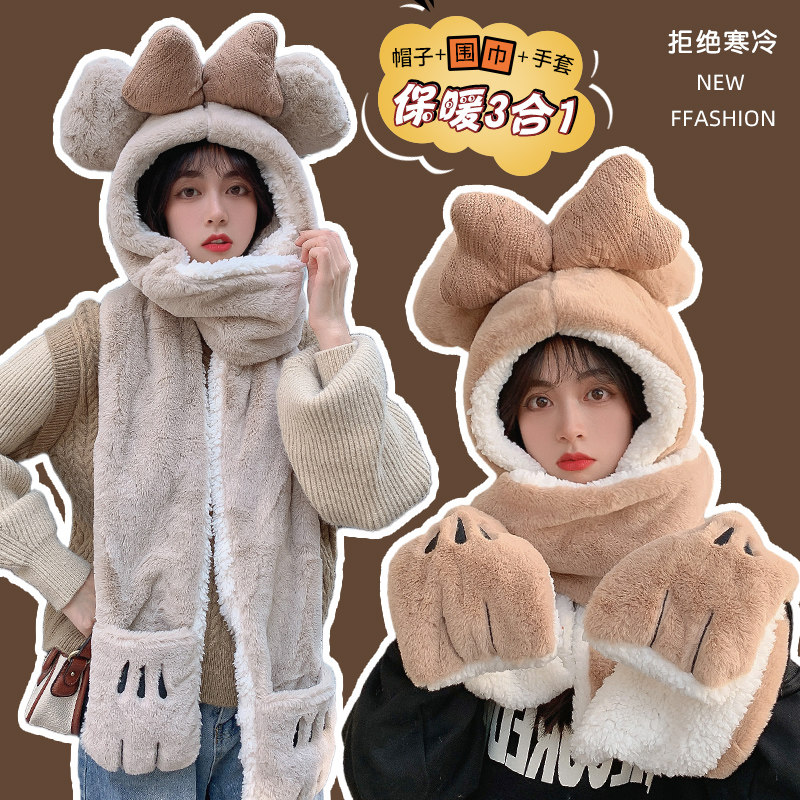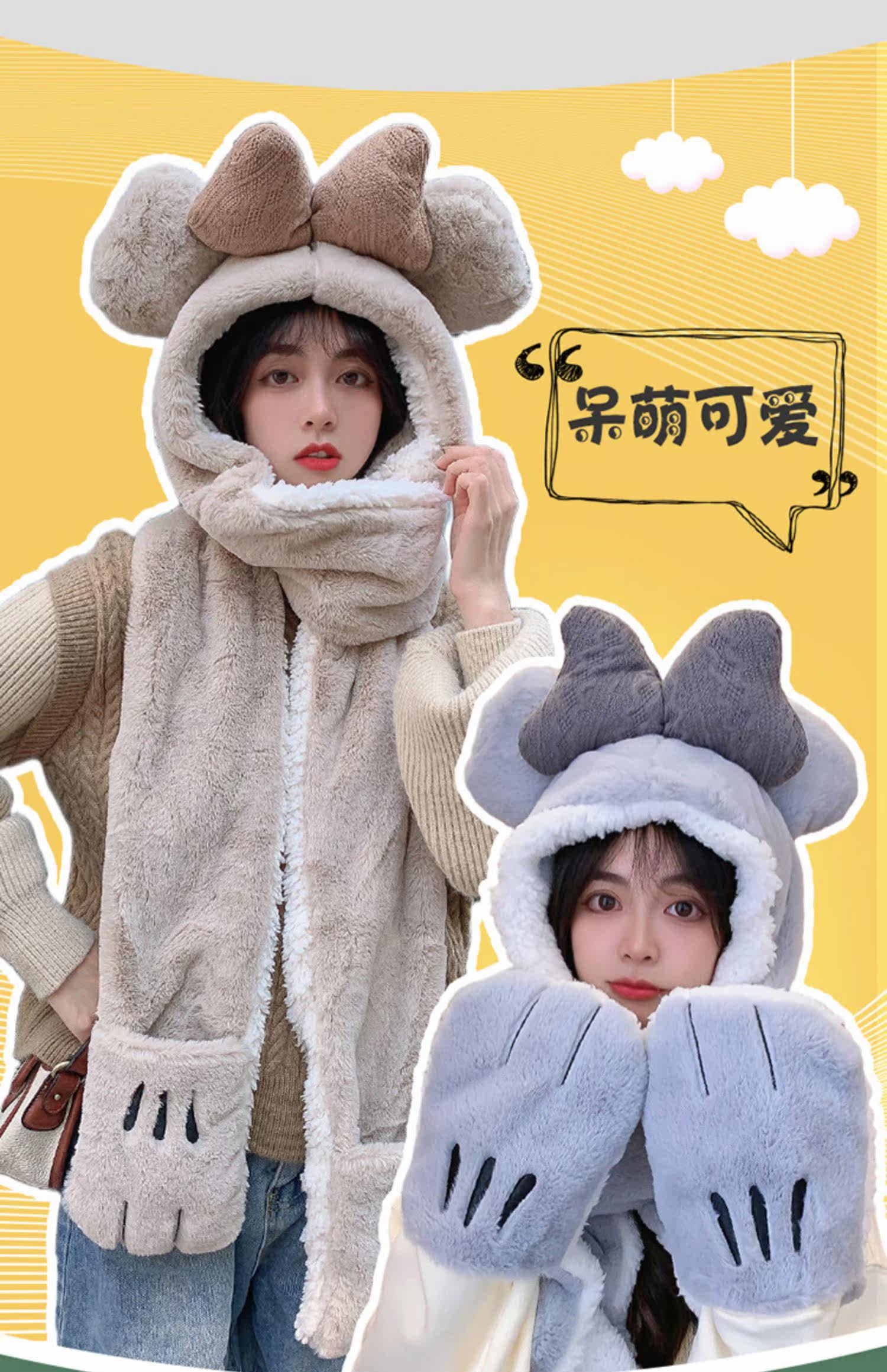Шапка, демисезонный универсальный шарф, милый удерживающий тепло бархатный комплект с капюшоном, с медвежатами, коллекция 2022, 3 предмета