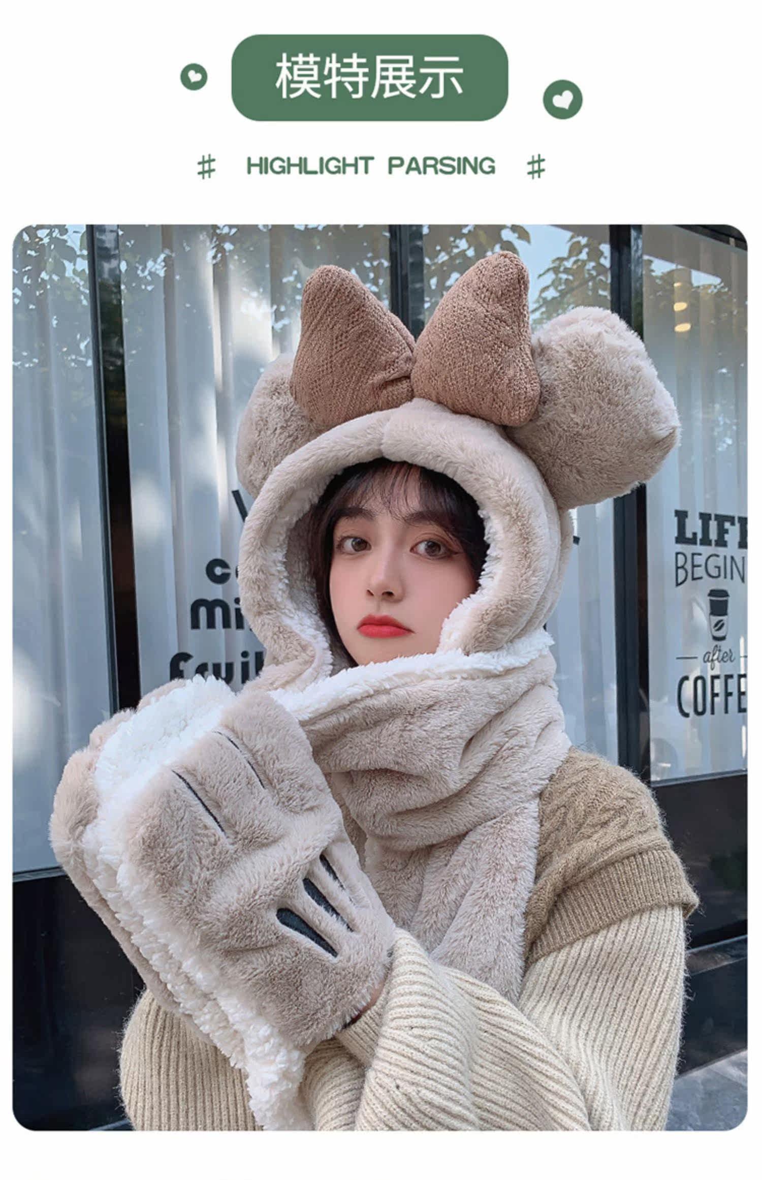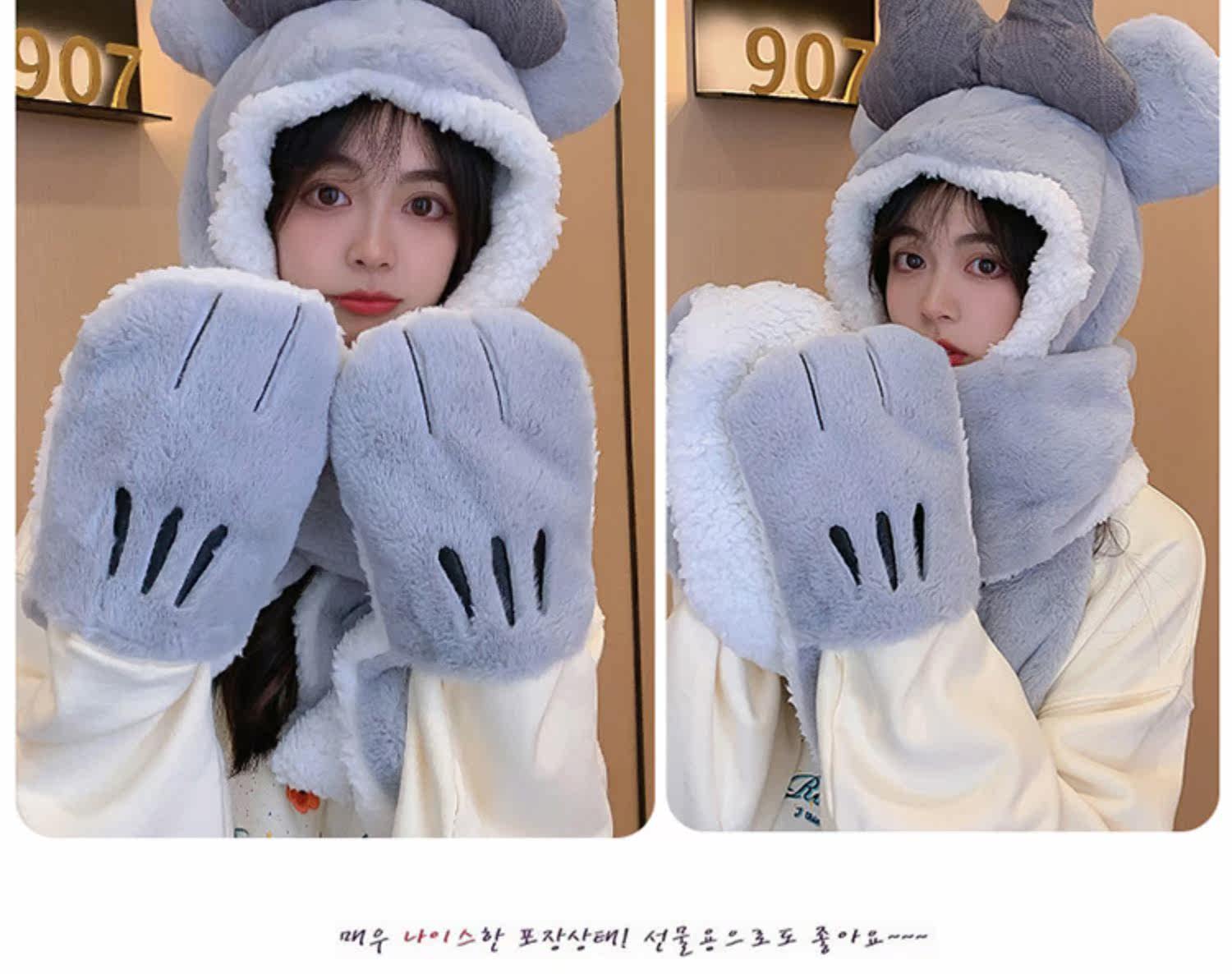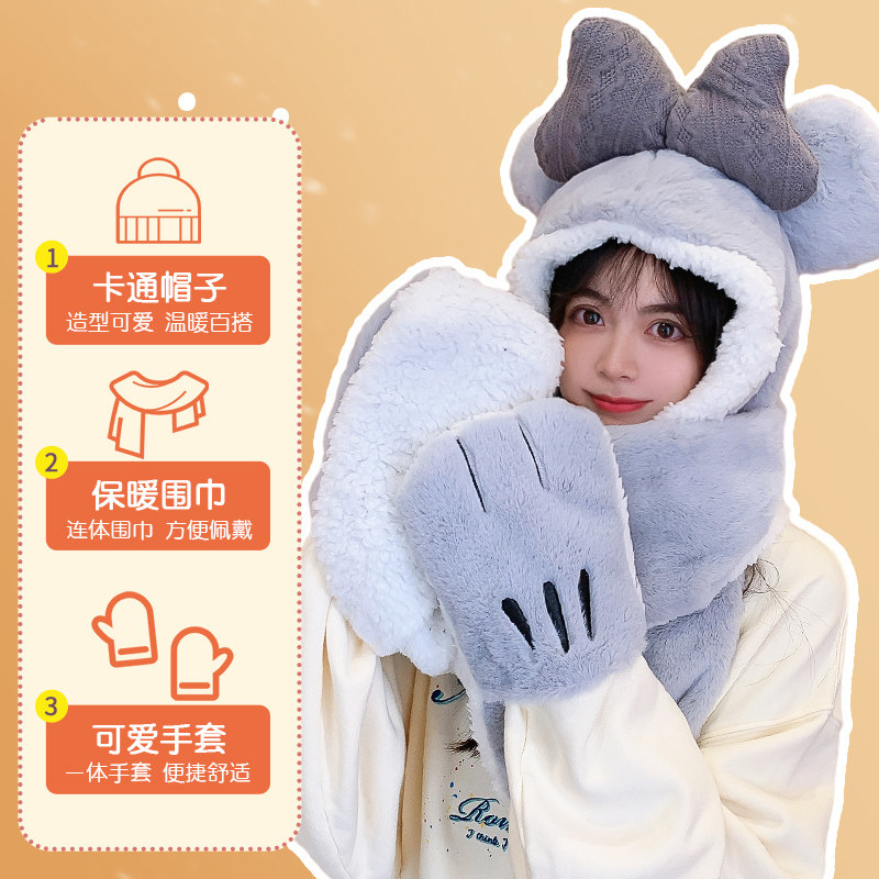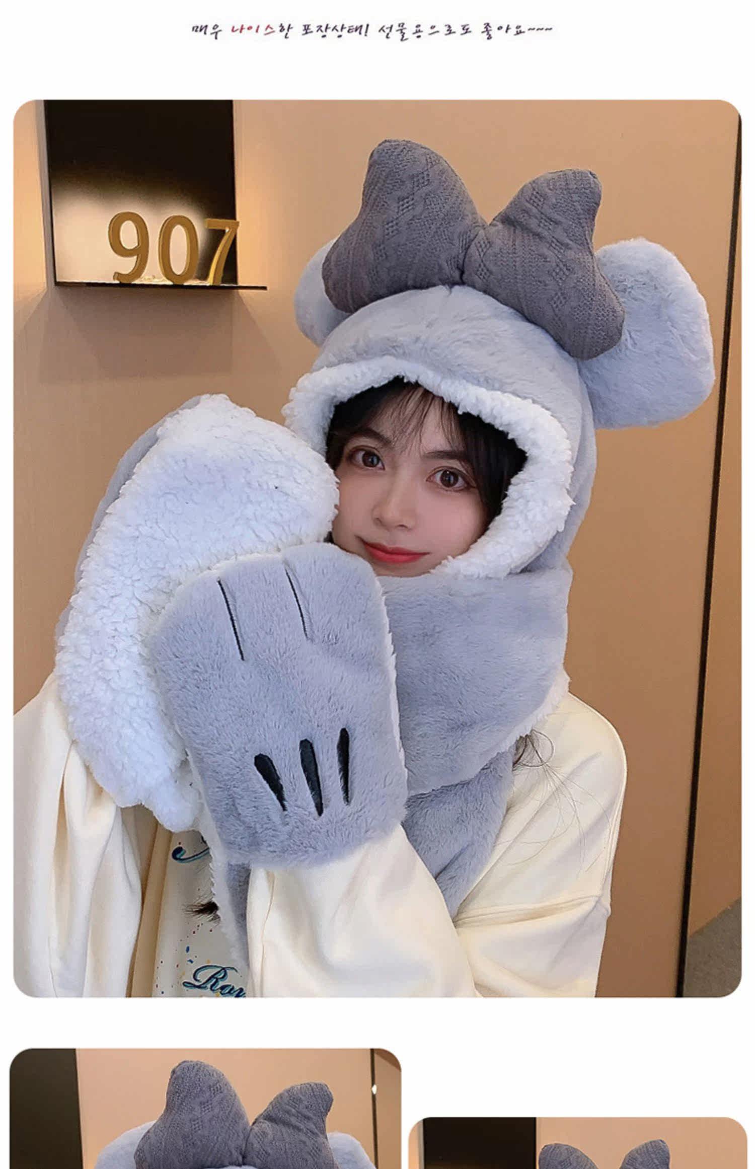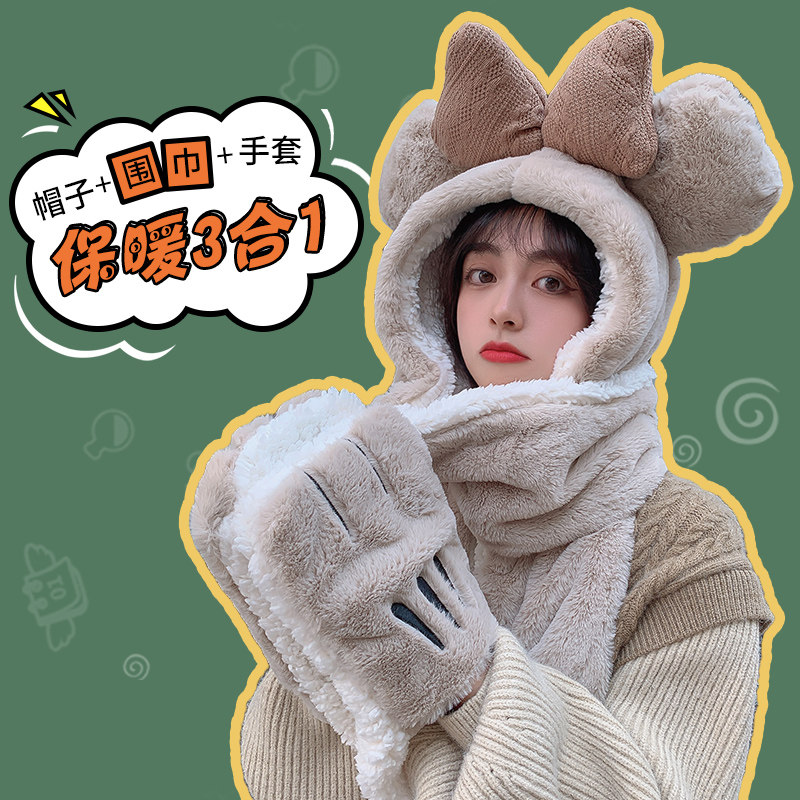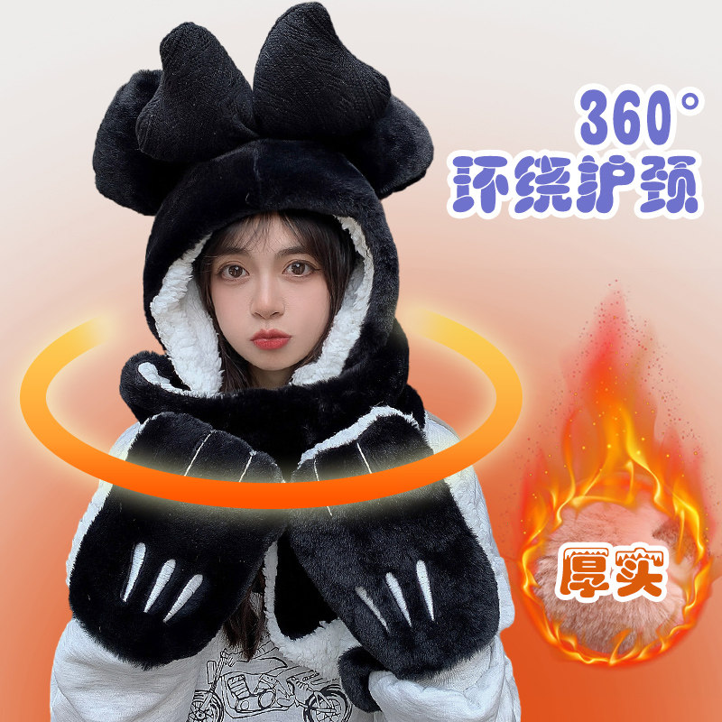 Шапка, демисезонный универсальный шарф, милый удерживающий тепло бархатный комплект с капюшоном, с медвежатами, коллекция 2022, 3 предмета