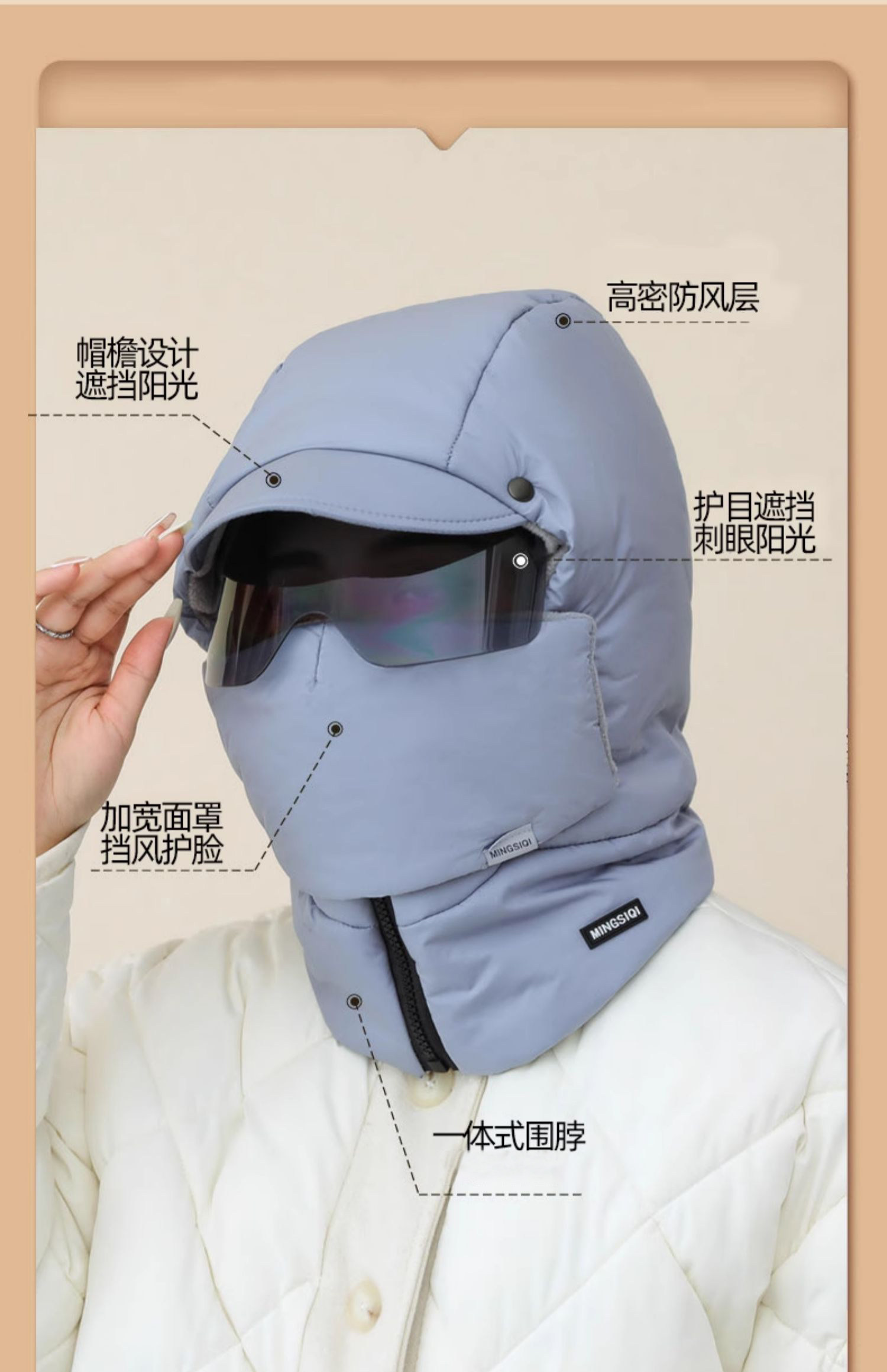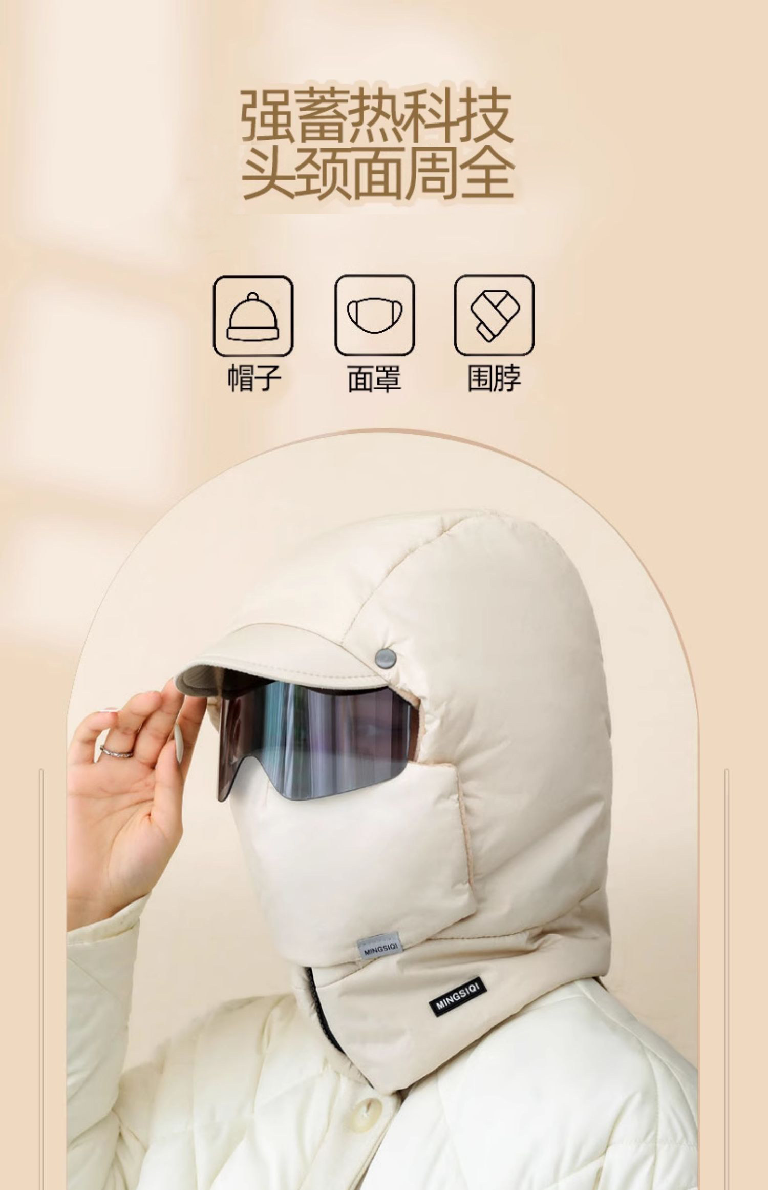 南极人 Демисезонная удерживающая тепло шапка, ветрозащитная маска, увеличенная толщина