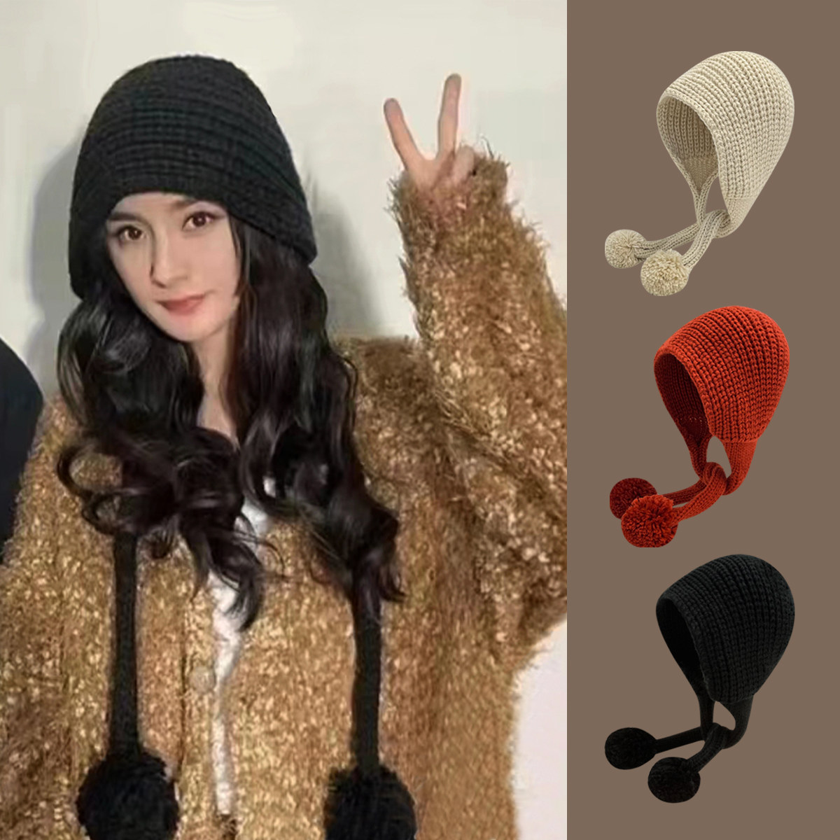 Ян Ми, та же самая черная длинная шерстяная шерсть, женская осень и зима, согревая большую голову, ушной хит -ухой, лицо маленькое
