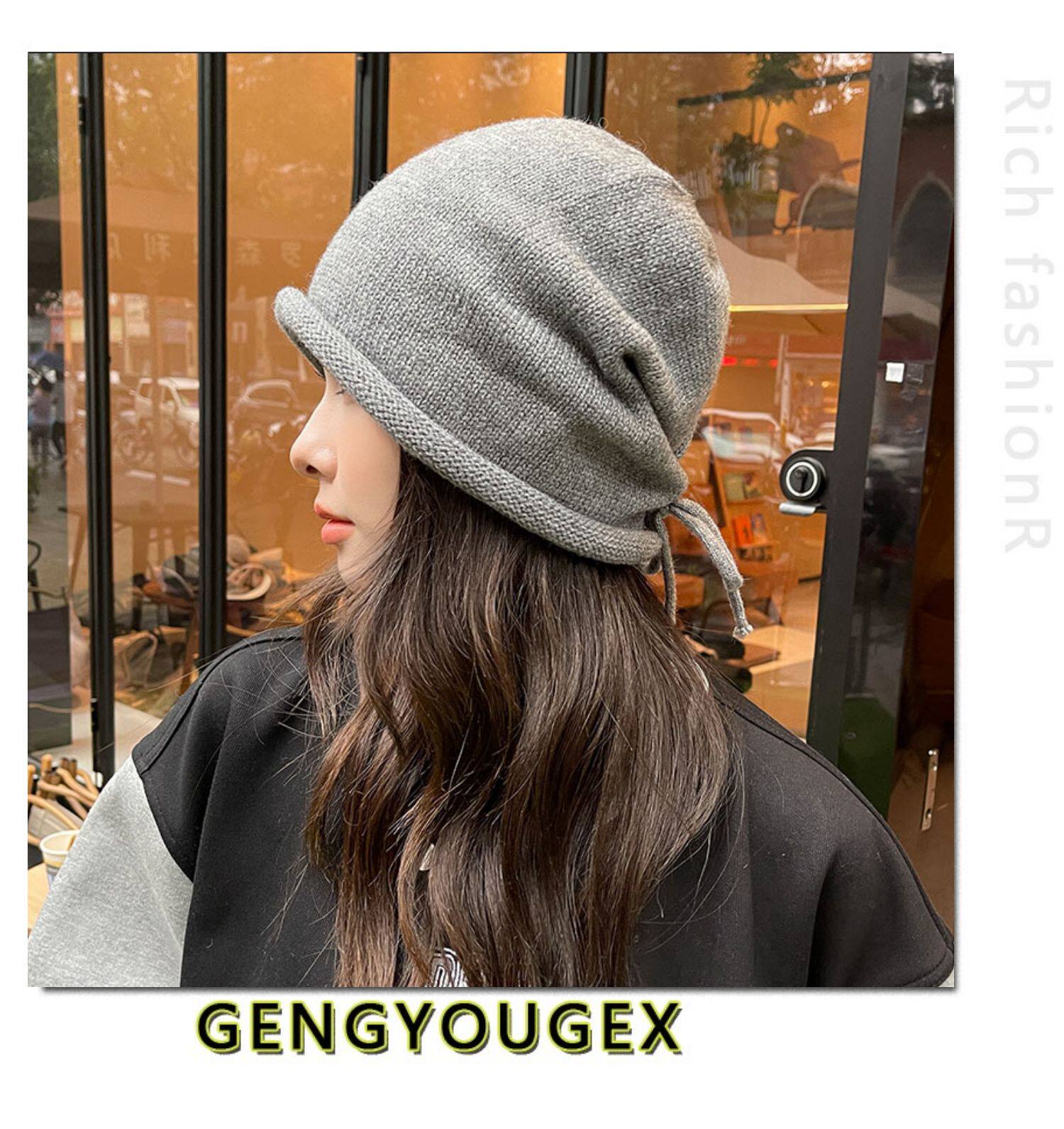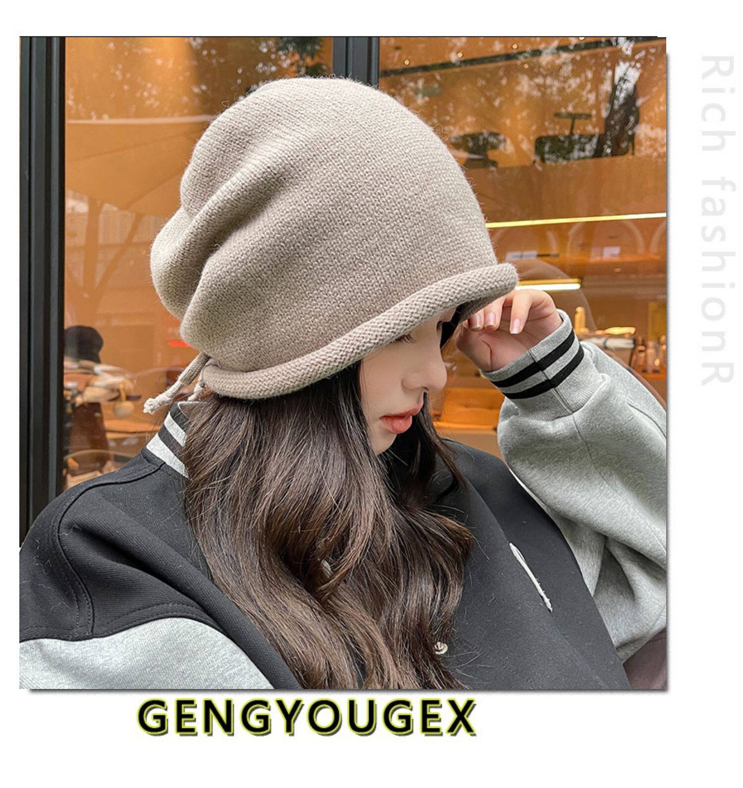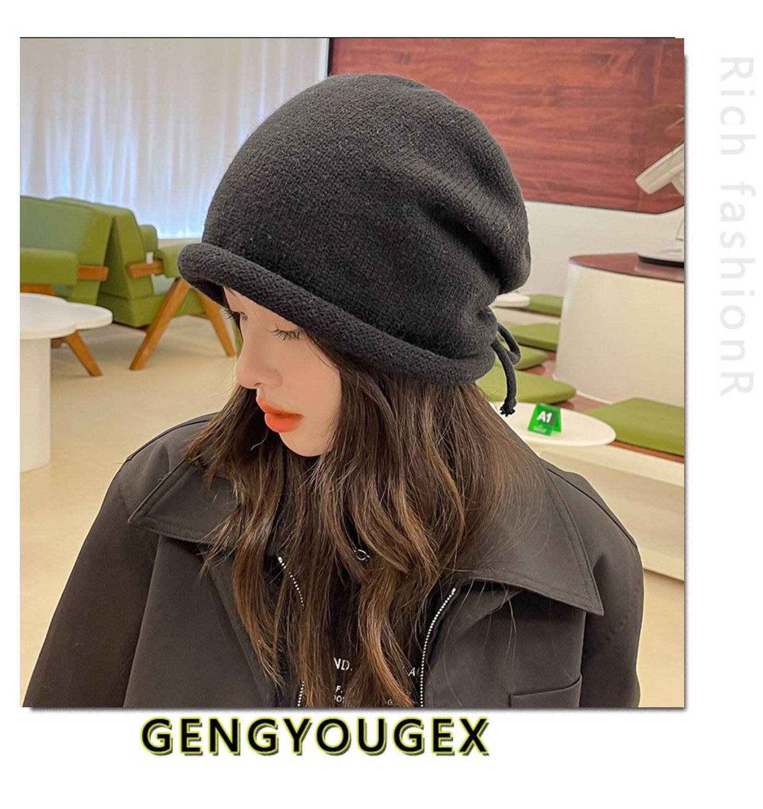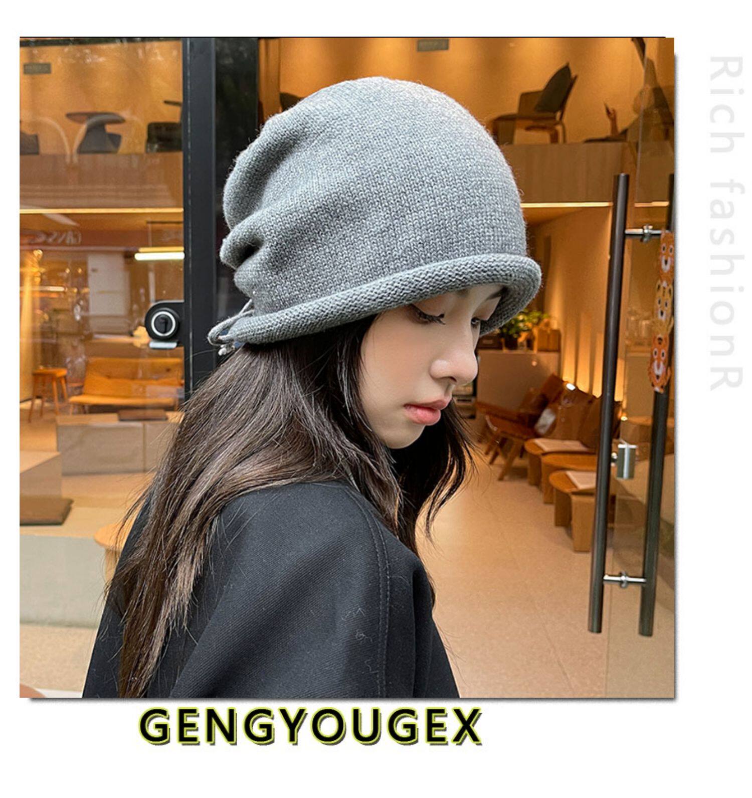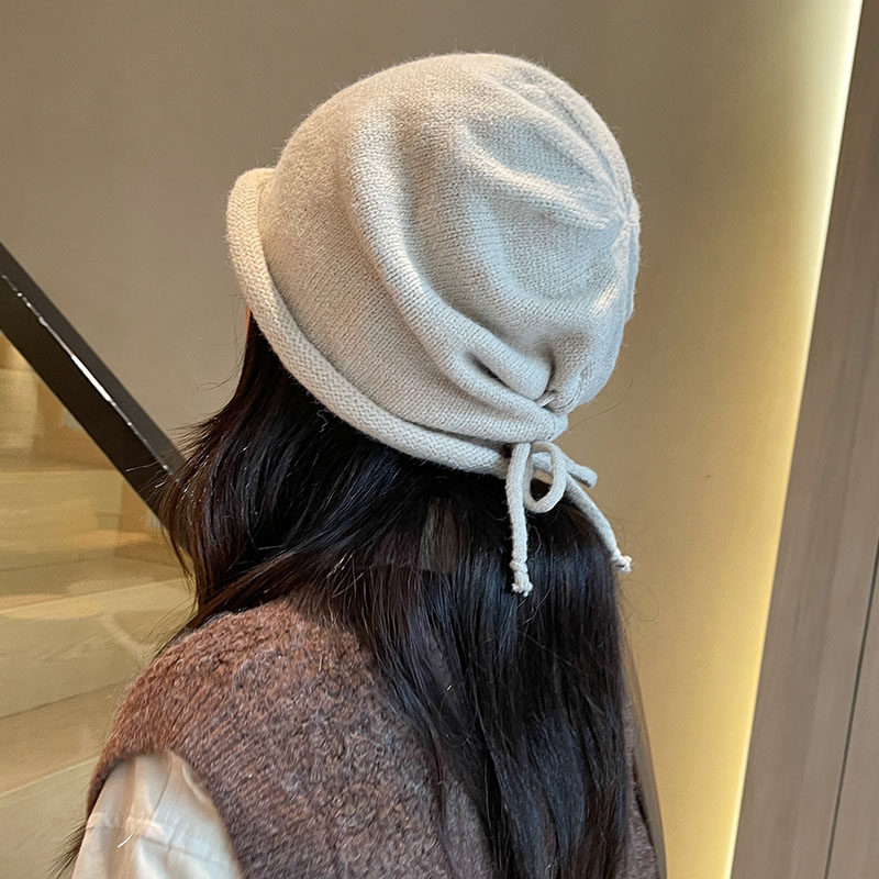Японская удерживающая тепло трикотажная демисезонная цветная шапка, в корейском стиле, на шнурках