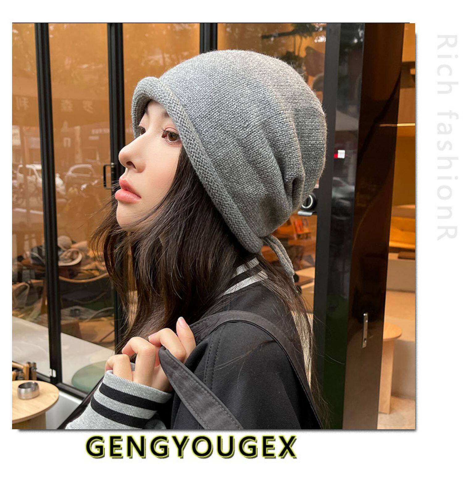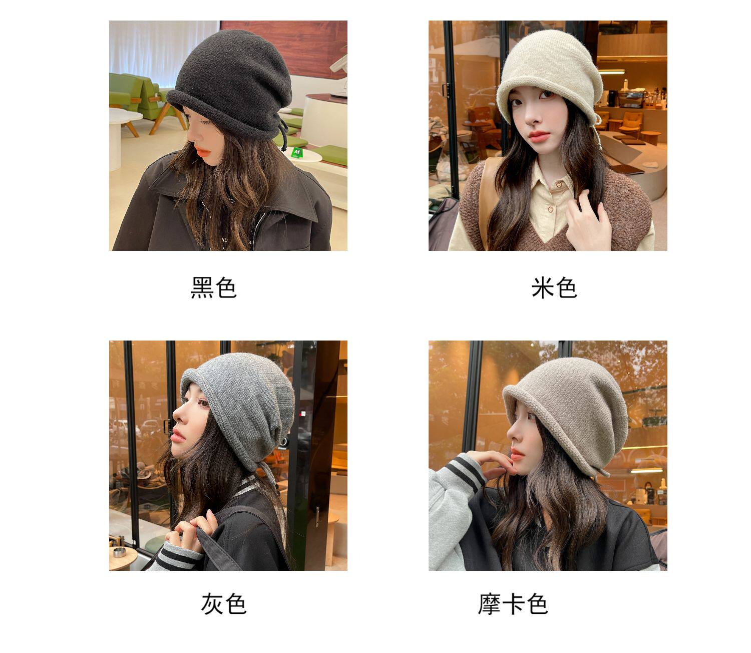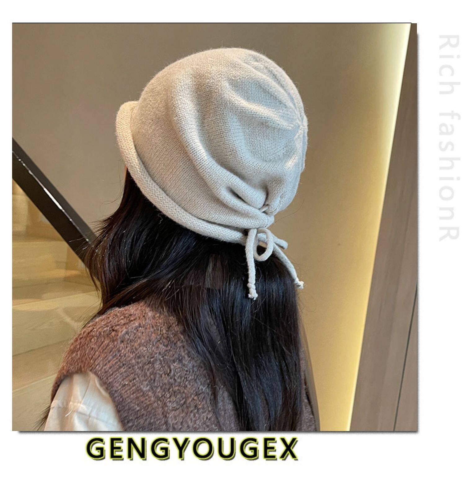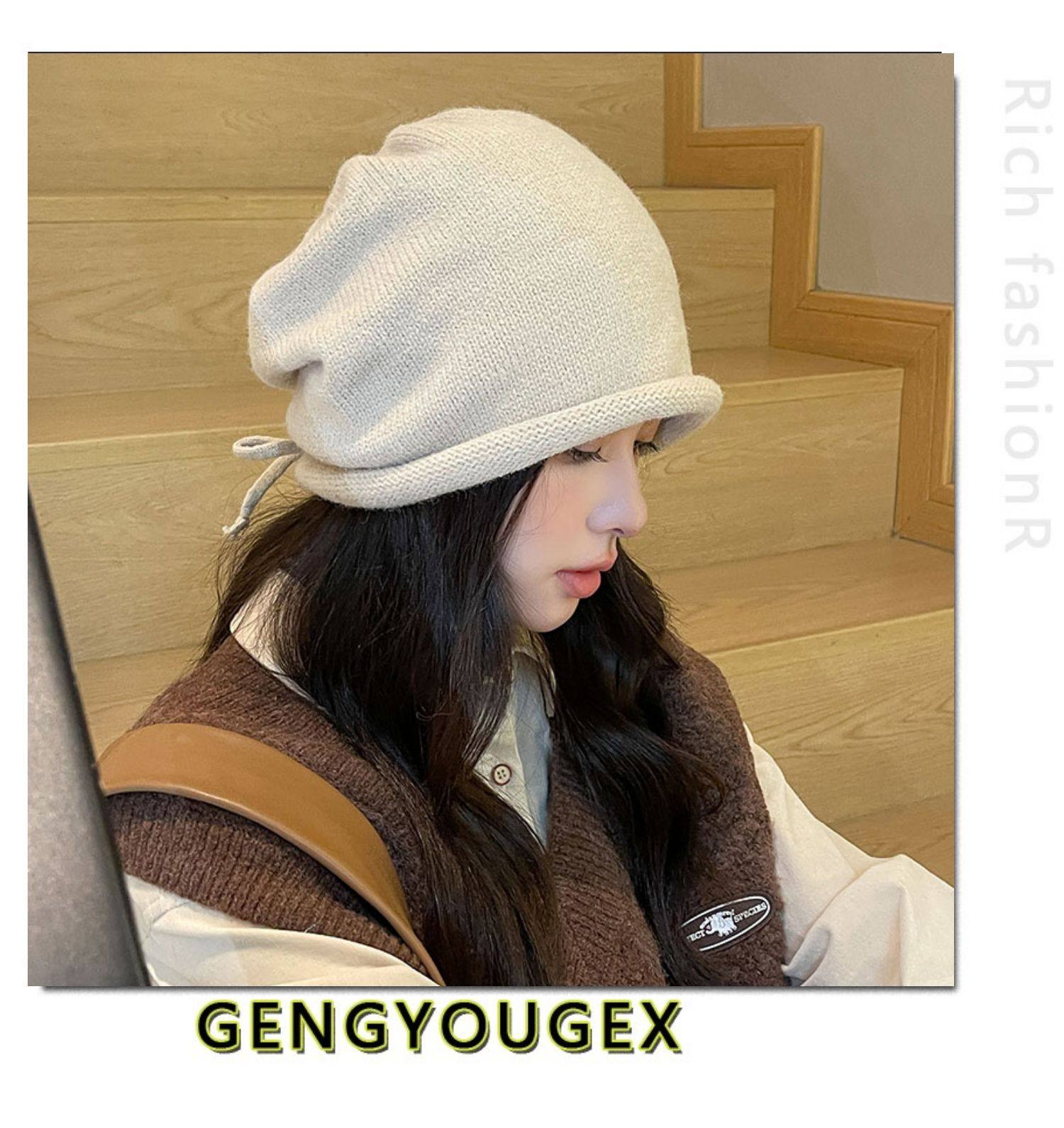 Японская удерживающая тепло трикотажная демисезонная цветная шапка, в корейском стиле, на шнурках