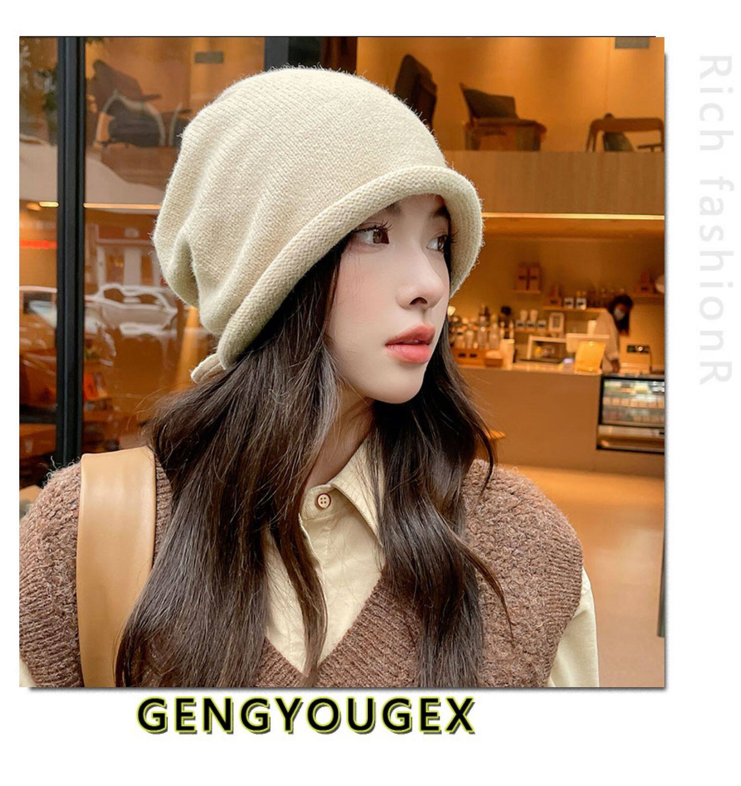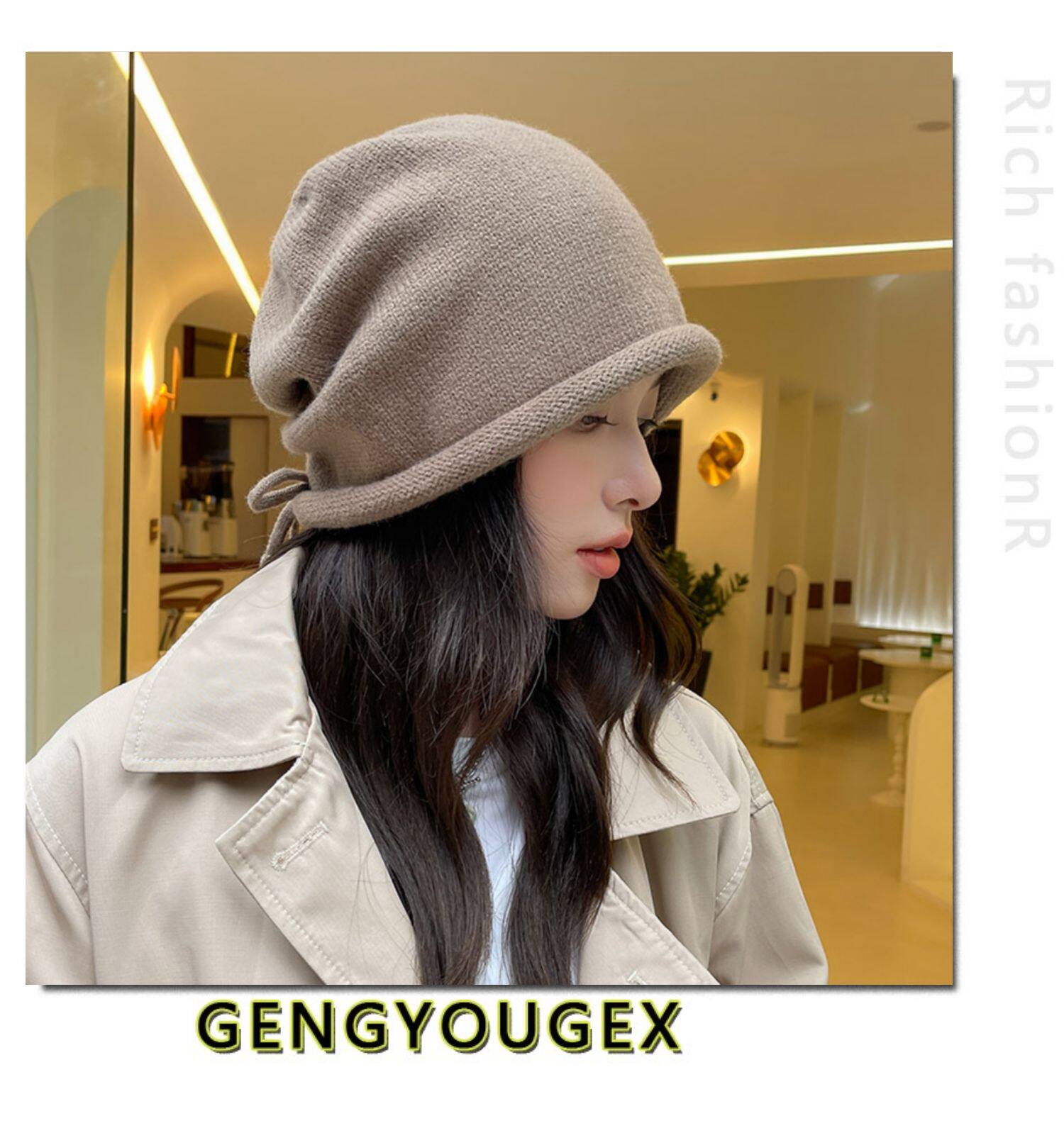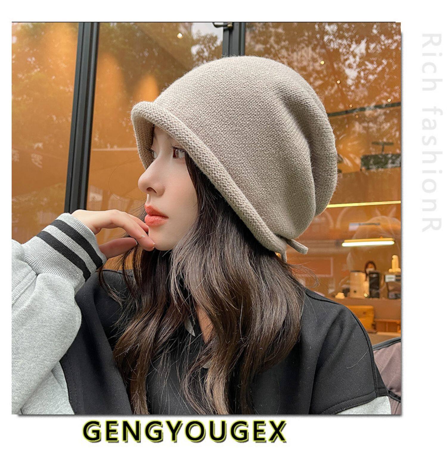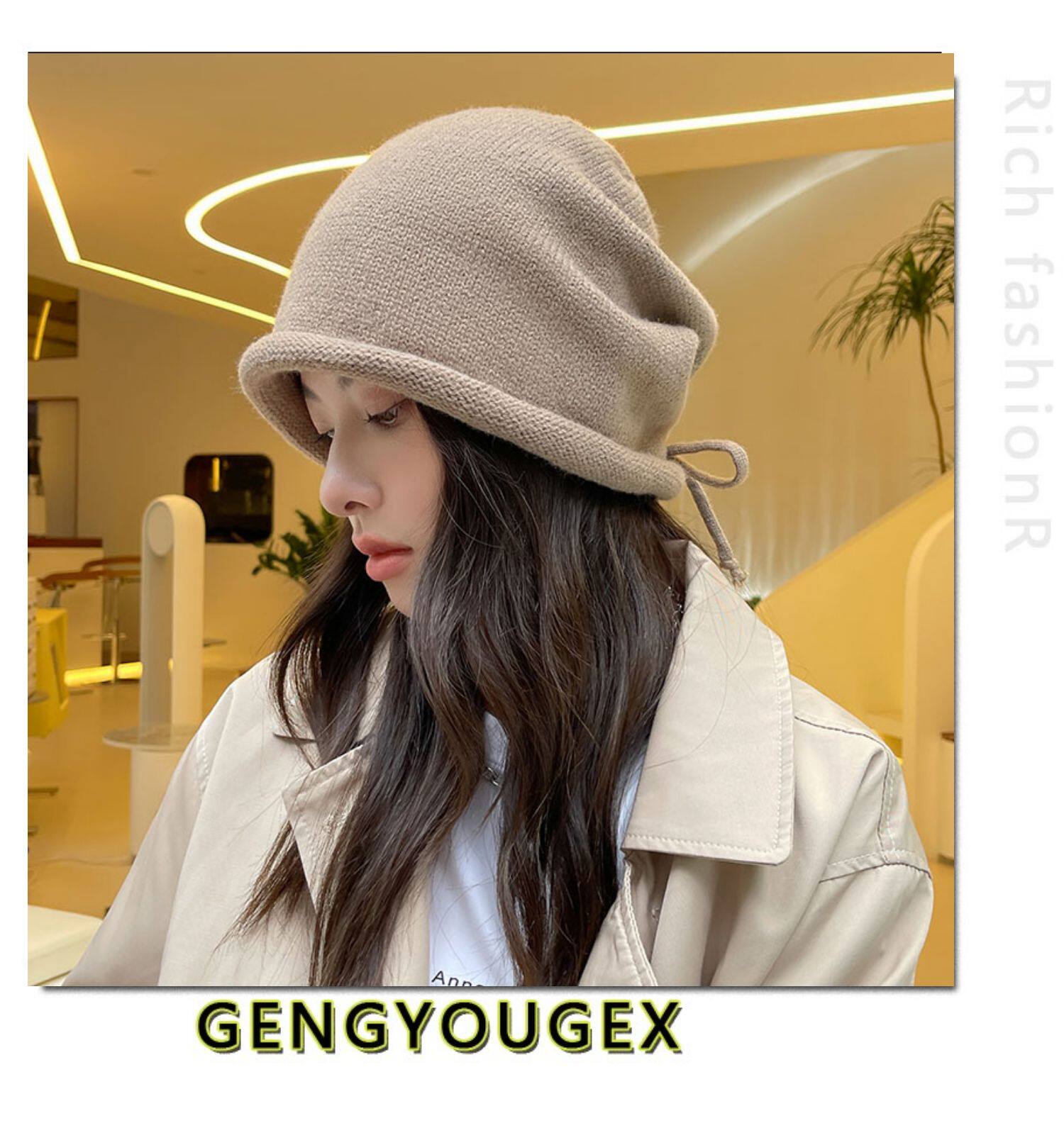 Японская удерживающая тепло трикотажная демисезонная цветная шапка, в корейском стиле, на шнурках