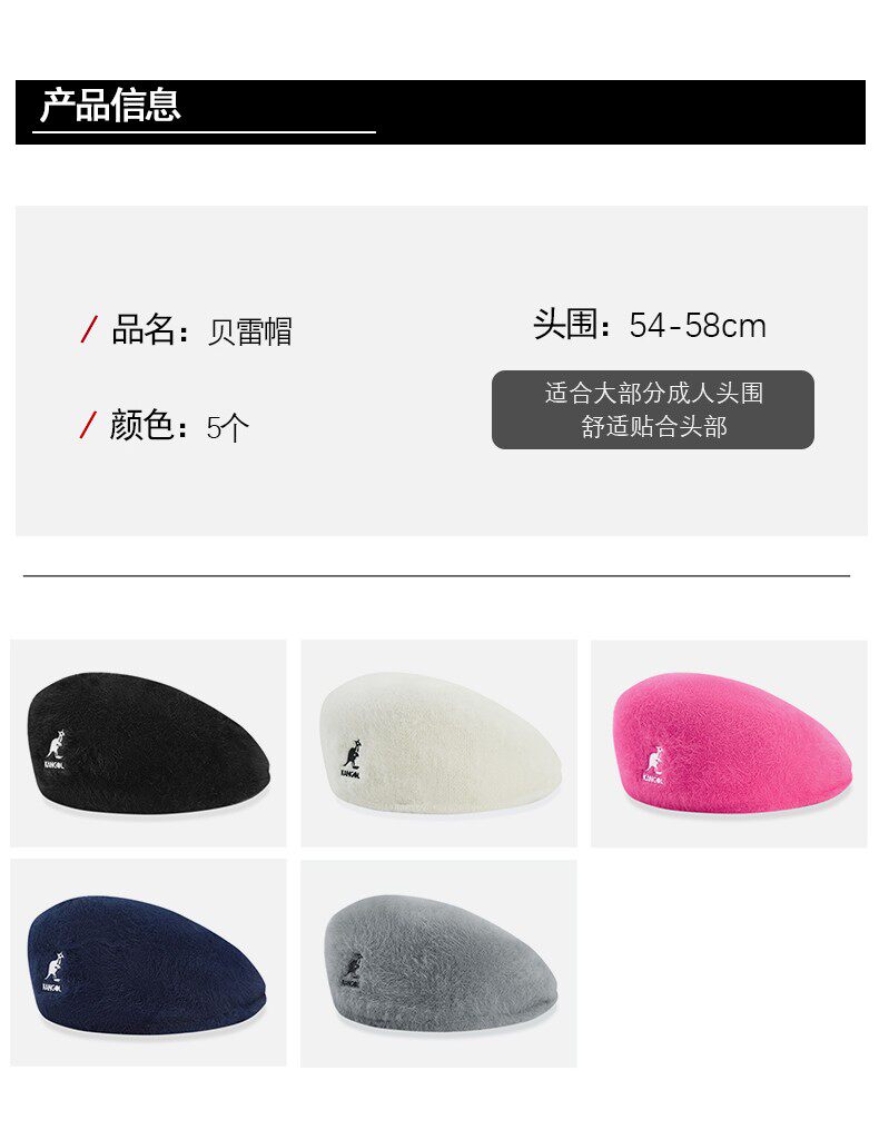 Кенгуру, шапка, ретро демисезонный берет, черная кепка, в корейском стиле