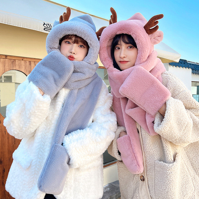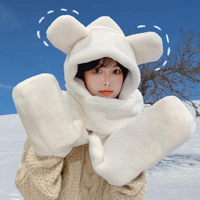 Шапка, шарф, зимняя толстовка с капюшоном, бархатные универсальные перчатки, удерживающий тепло комплект, с медвежатами, 3 предмета