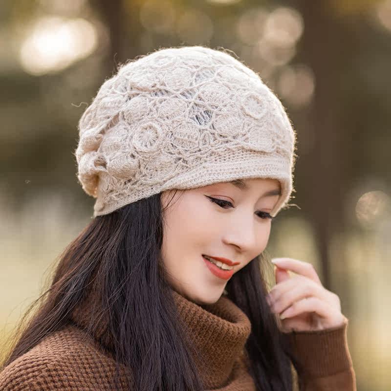 Зимняя модная трикотажная шапка, плетеный шерстяной берет ручной работы с капюшоном