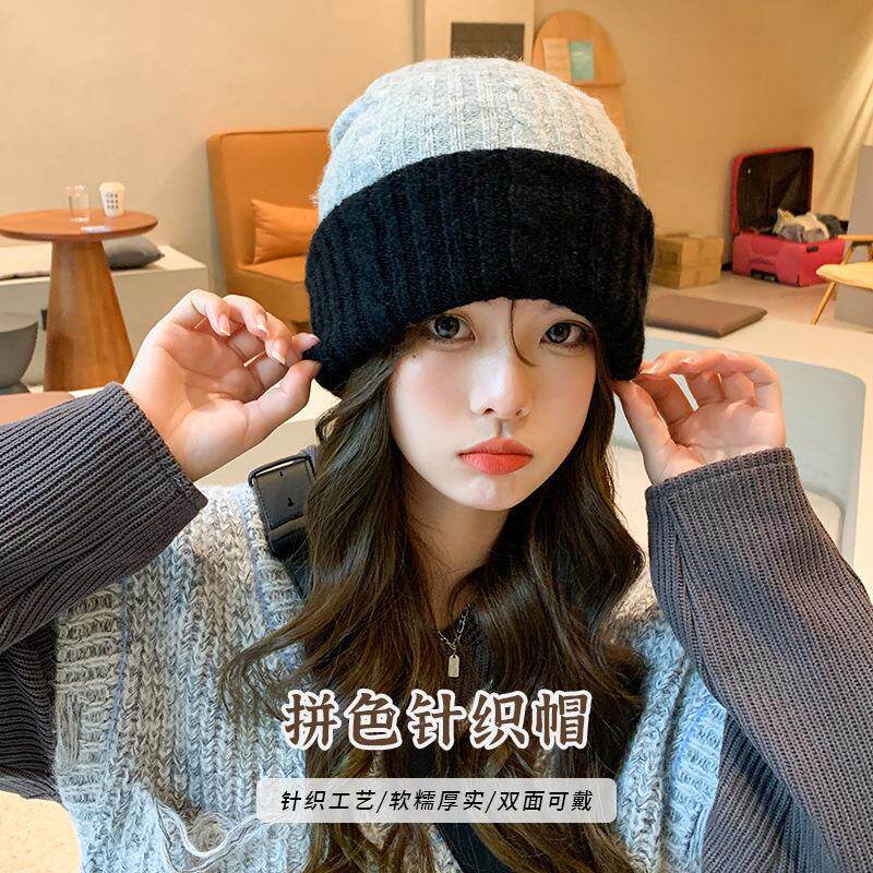 Демисезонная шерстяная удерживающая тепло вязаная шапка, в корейском стиле