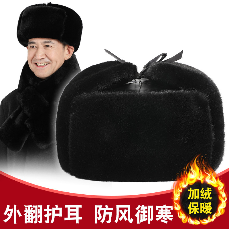 Мужская зимняя флисовая утепленная шапка, для среднего возраста