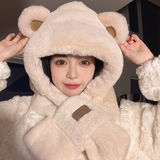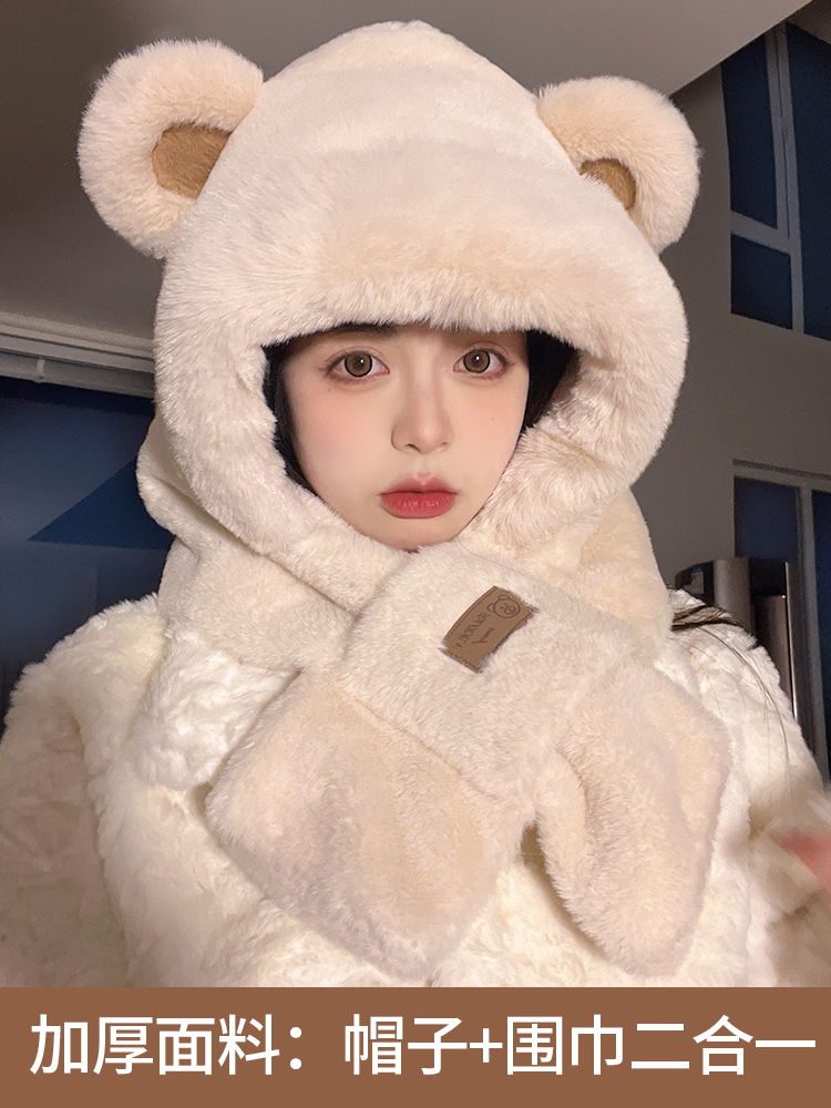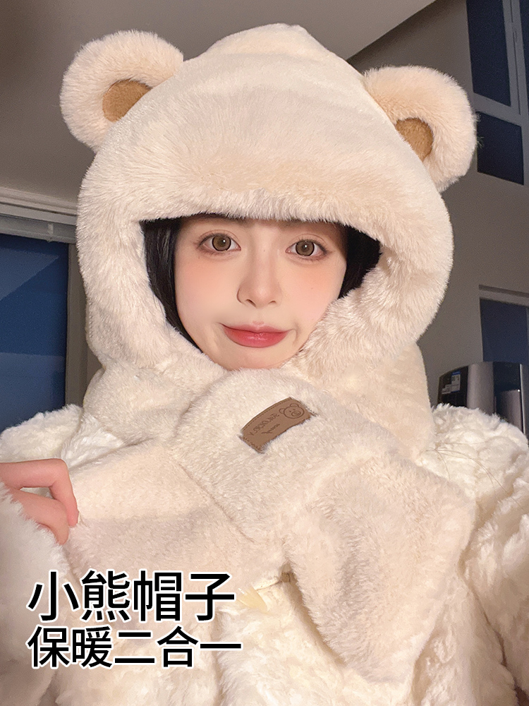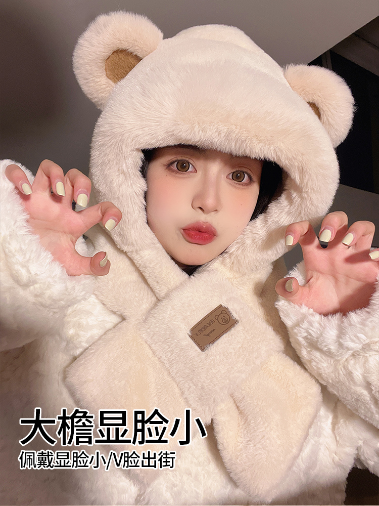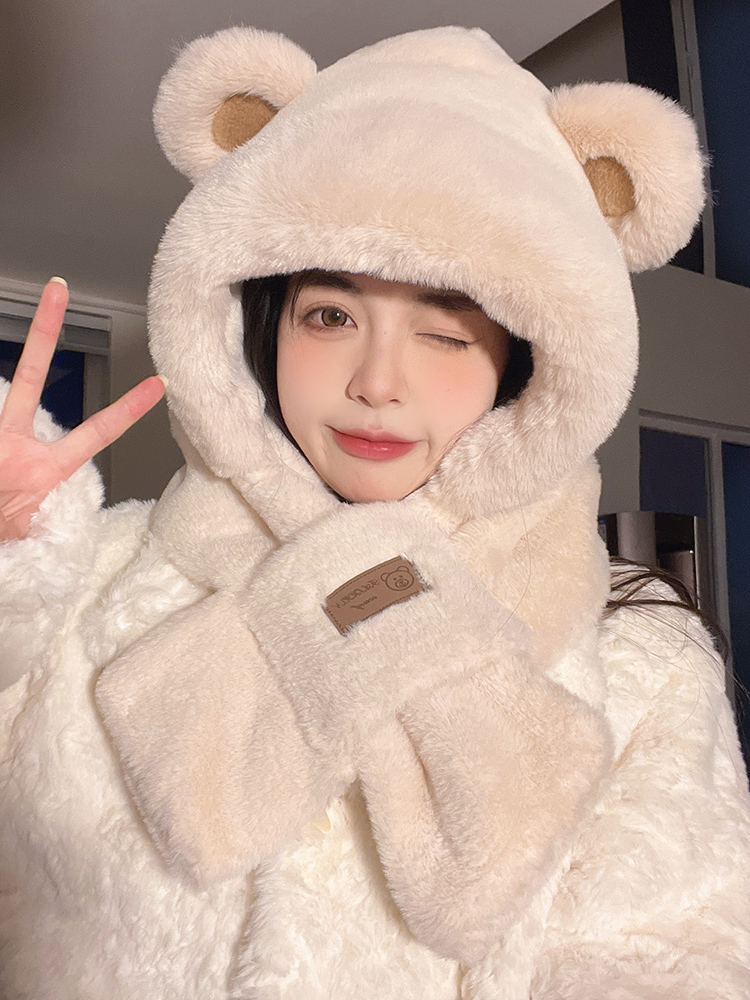 Демисезонная шапка, милый шарф, удерживающий тепло бархатный шарф-платок, в корейском стиле, с медвежатами