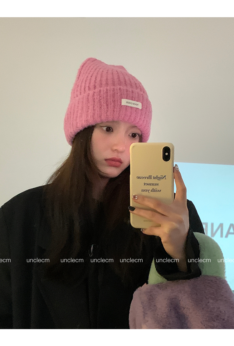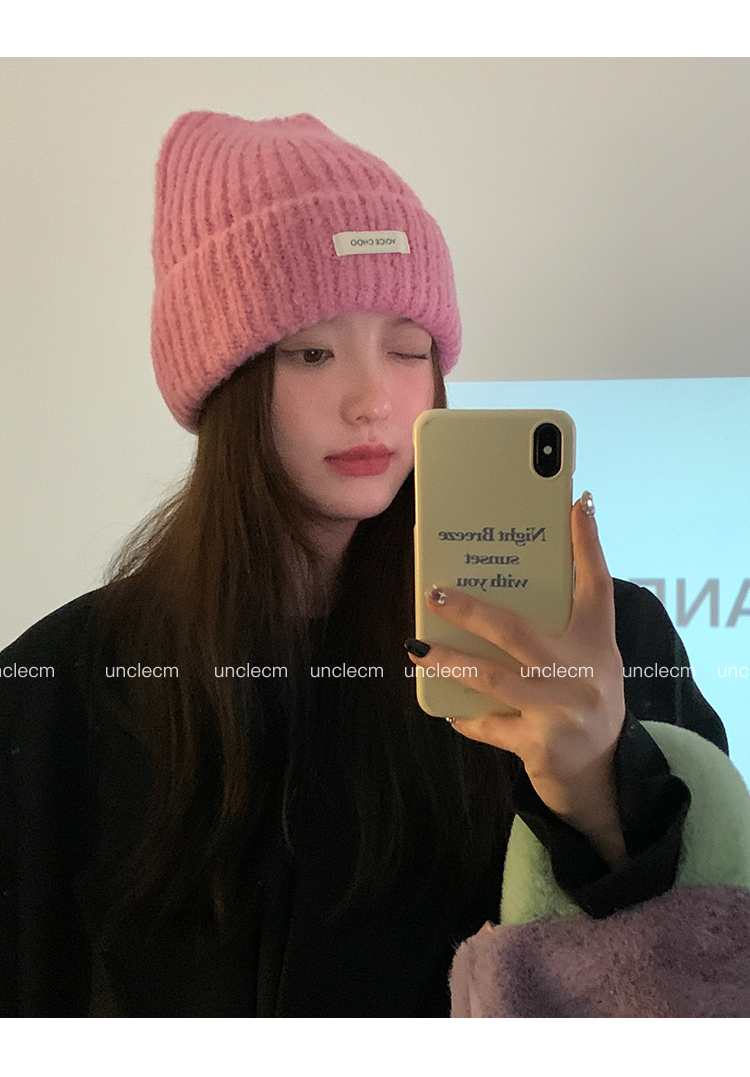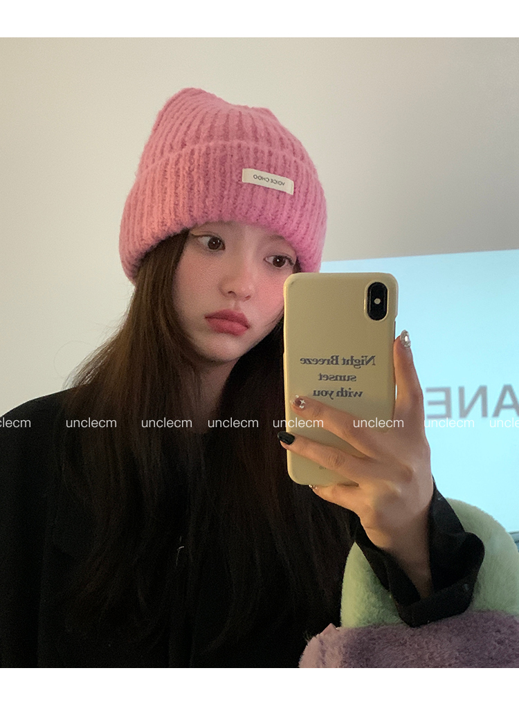 Шерстяная демисезонная вместительная и большая удерживающая тепло розовая вязаная шапка для отдыха
