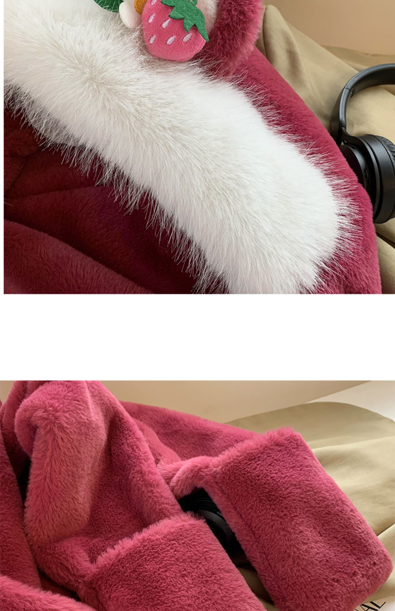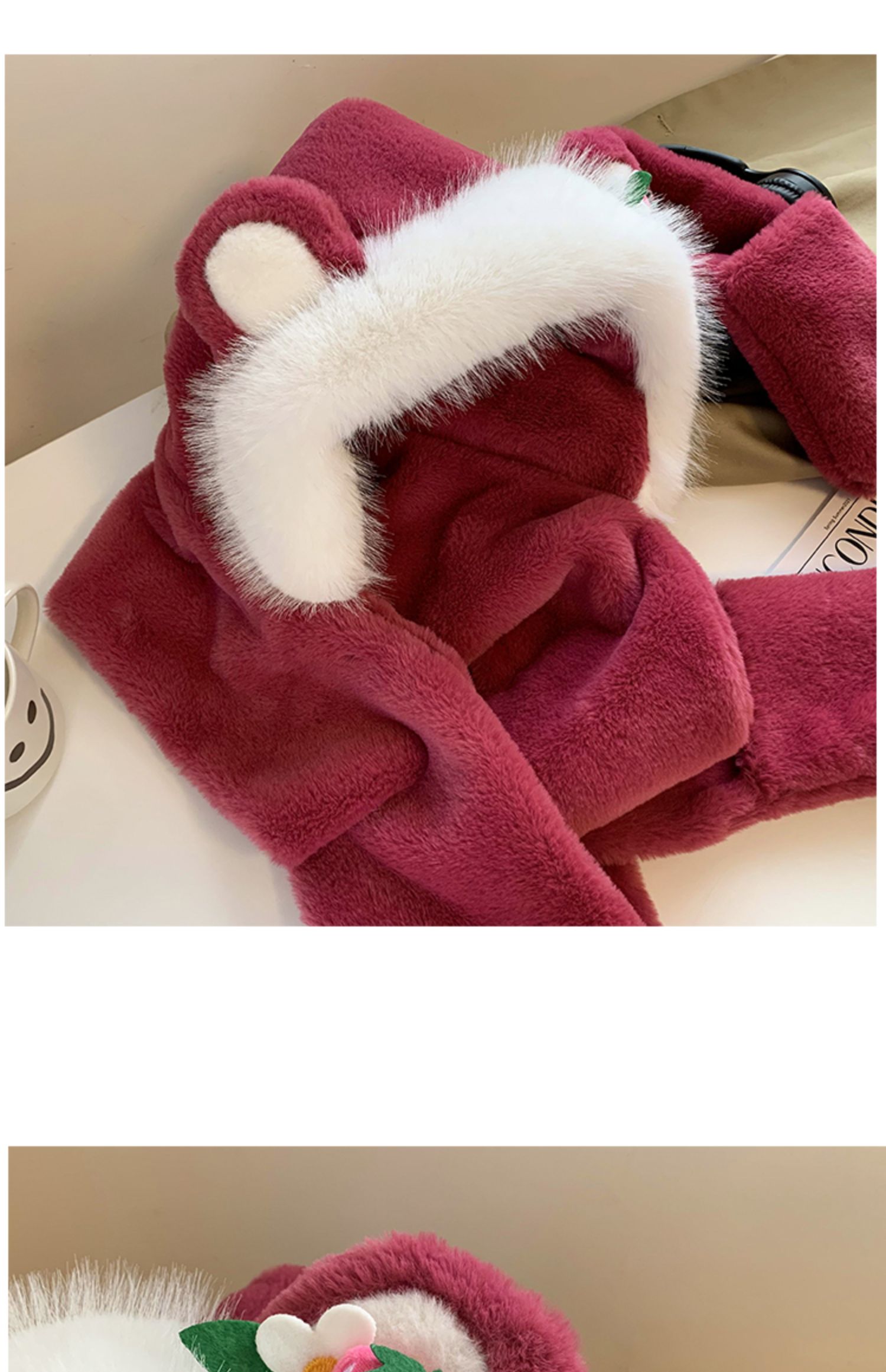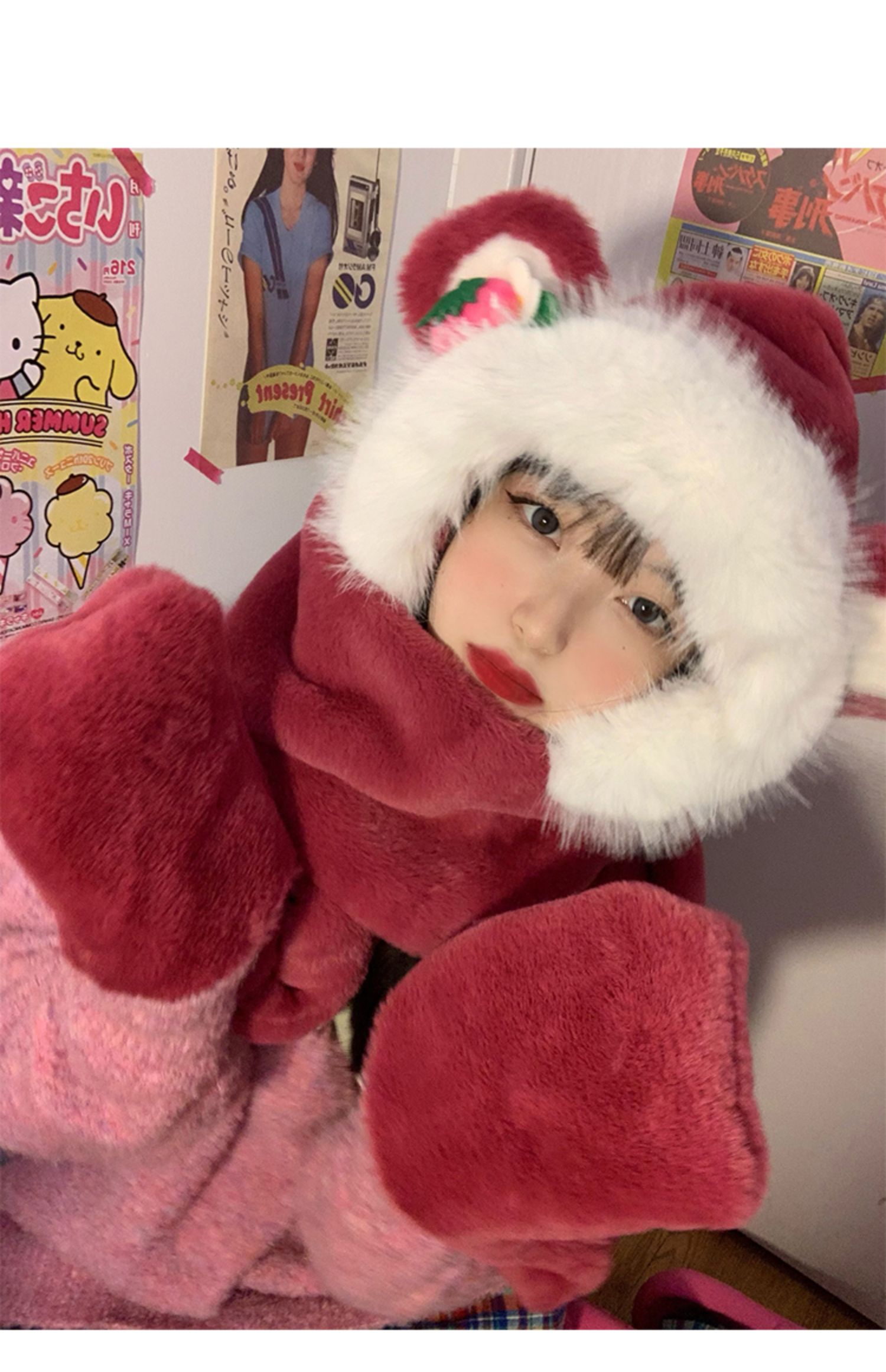 Клубника, шапка, зимний шарф, милые утепленные удерживающие тепло плюшевые перчатки, комплект, в корейском стиле, 3 предмета
