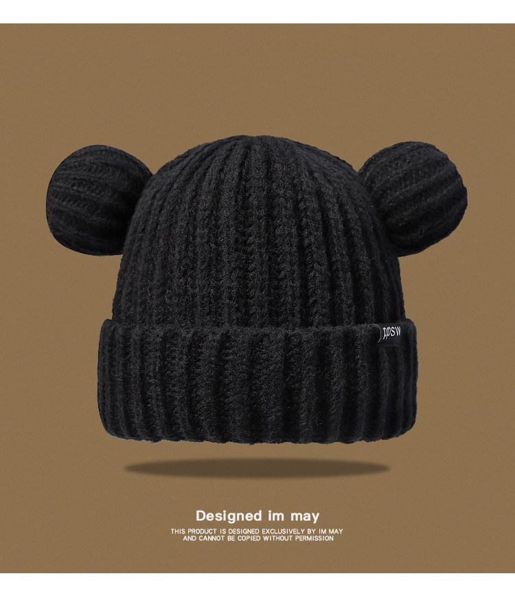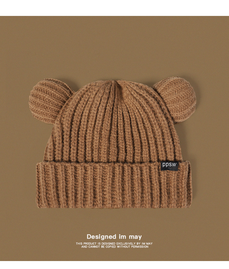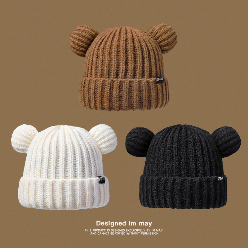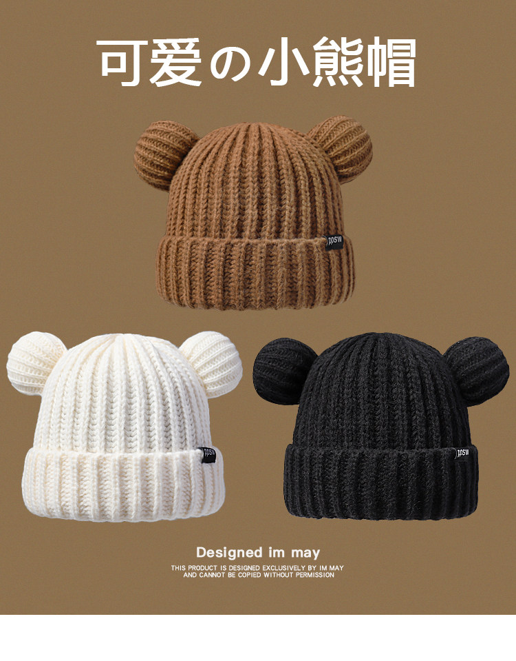 Японская милая утепленная удерживающая тепло зимняя трикотажная шерстяная шапка, с медвежатами