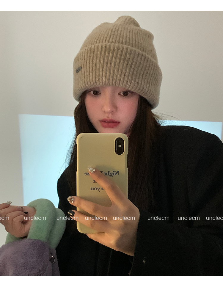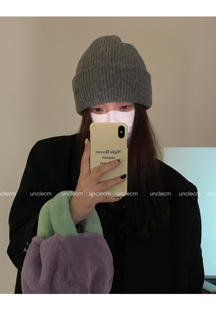 Демисезонная японская удерживающая тепло шерстяная цветная вязаная шапка